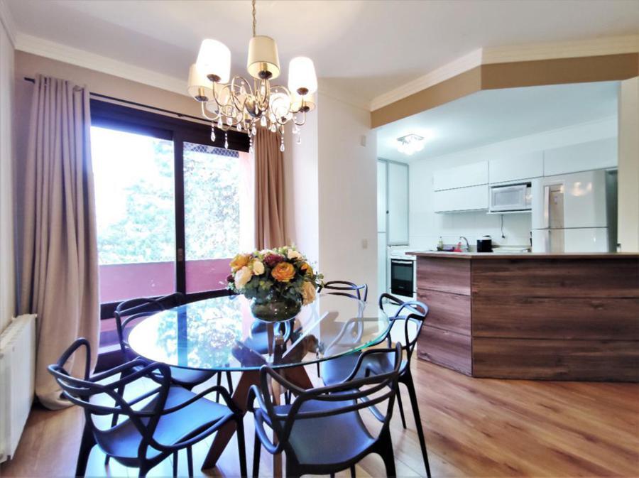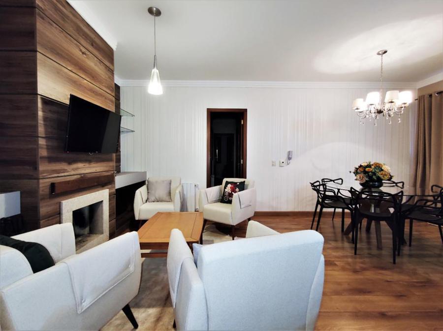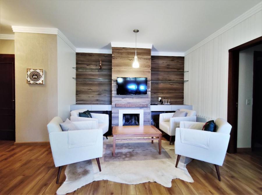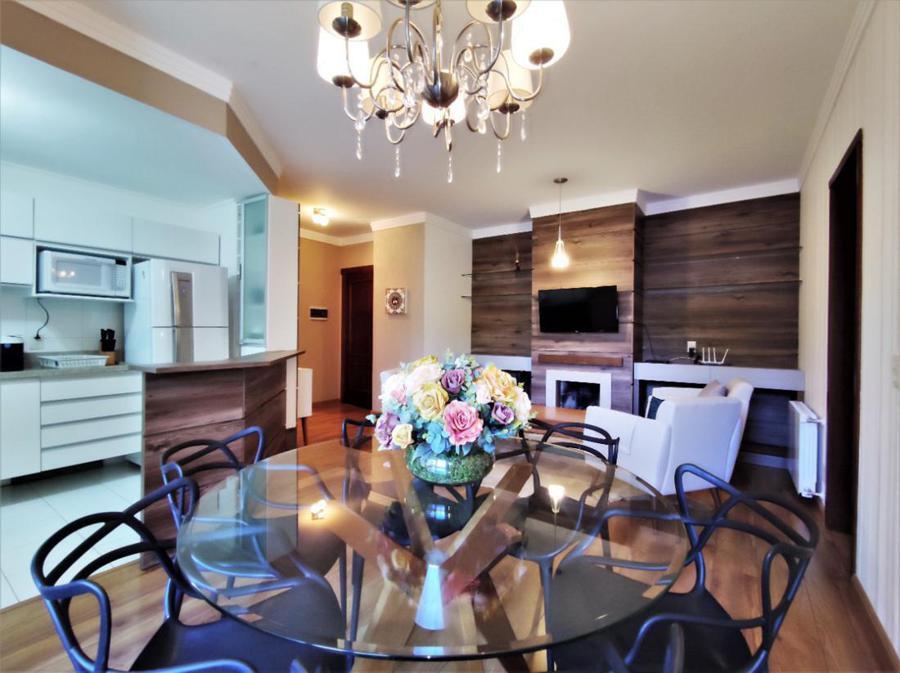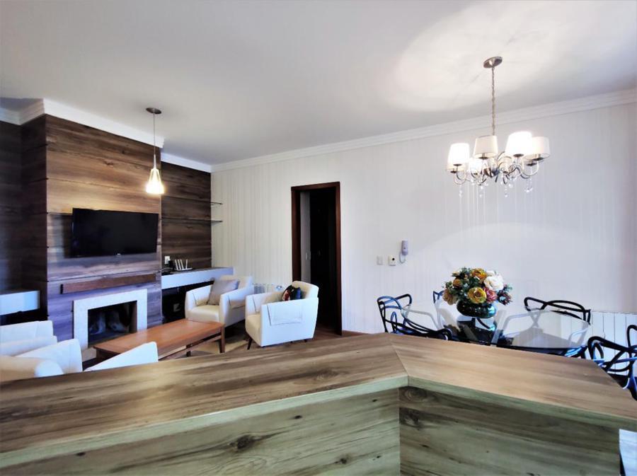 Corretor Gramado e Canela vende Mobiliado, com infra de resort Apartamento com 3 dormitórios (1 suíte), banheiro social, living com lareira e sacada, cozinha americana com churrasqueira, lavanderia e garagens.
