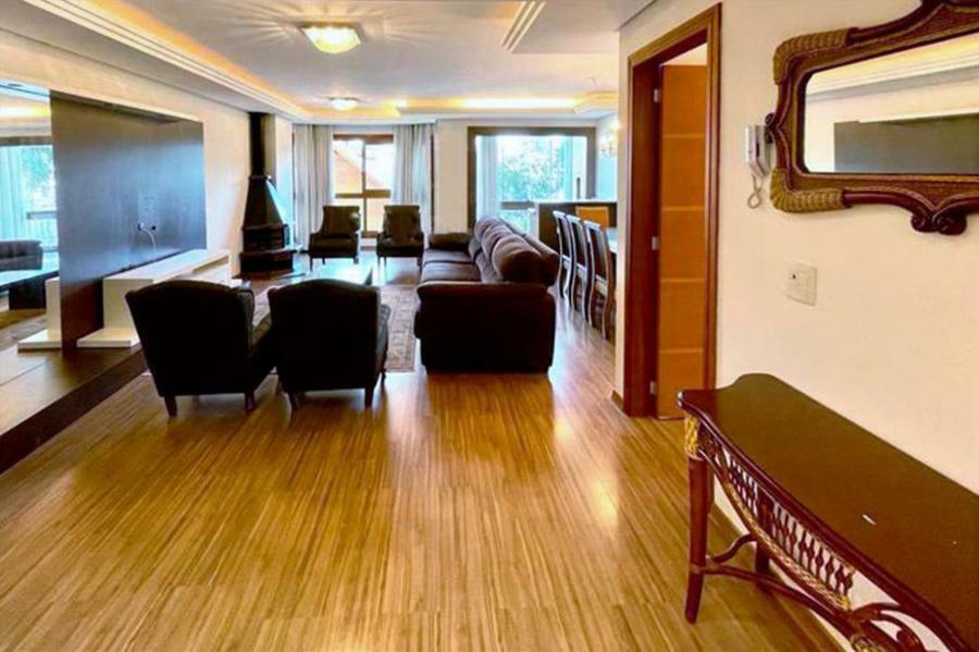 Corretor Gramado e Canela vende: Semi mobiliado, a poucos passos da Rua Coberta. Apartamento com 3 dormitórios (1 suíte), living com lareira e sacada, espaço gourmet, cozinha americana, lavanderia e garagens.