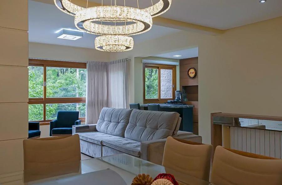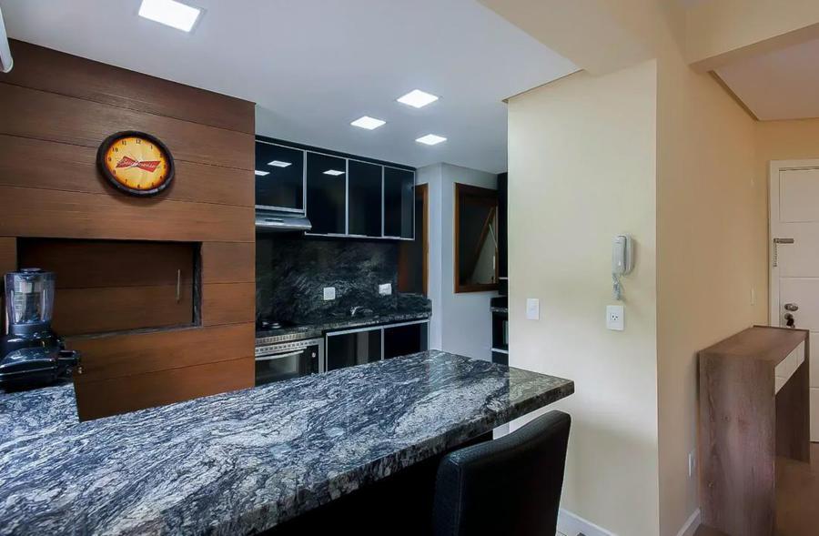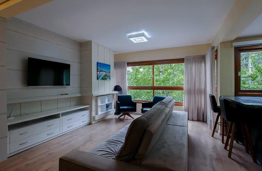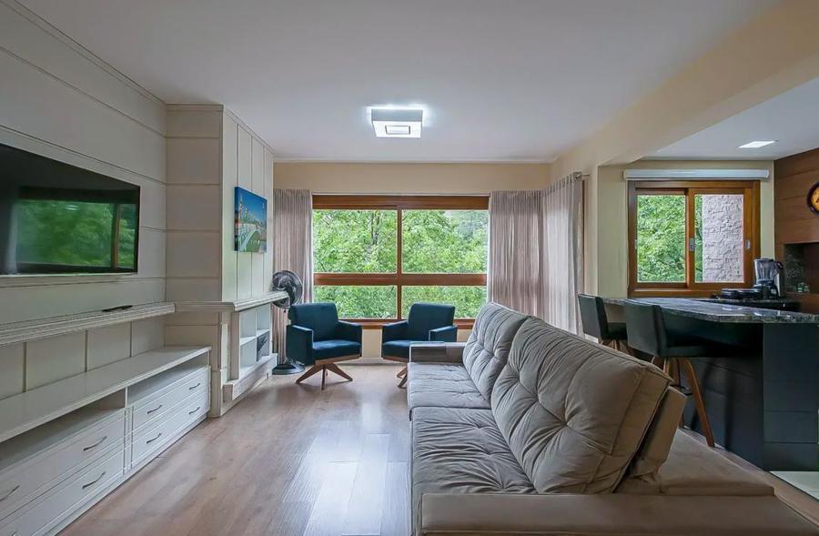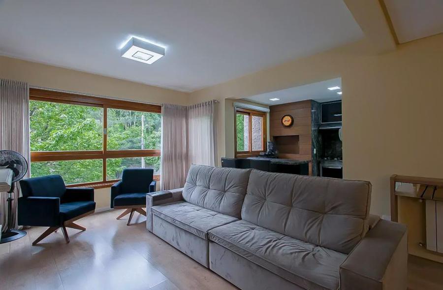 Corretor Gramado e Canela vende : Apartamento mobiliado perto da rua coberta ! 3 dormitórios ( 1 Suíte ) living com lareira, cozinha americana com churrasqueira, área de serviço, lavabo, banho social, vaga de garagem.