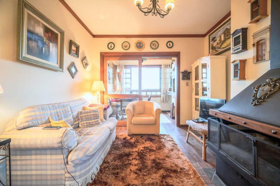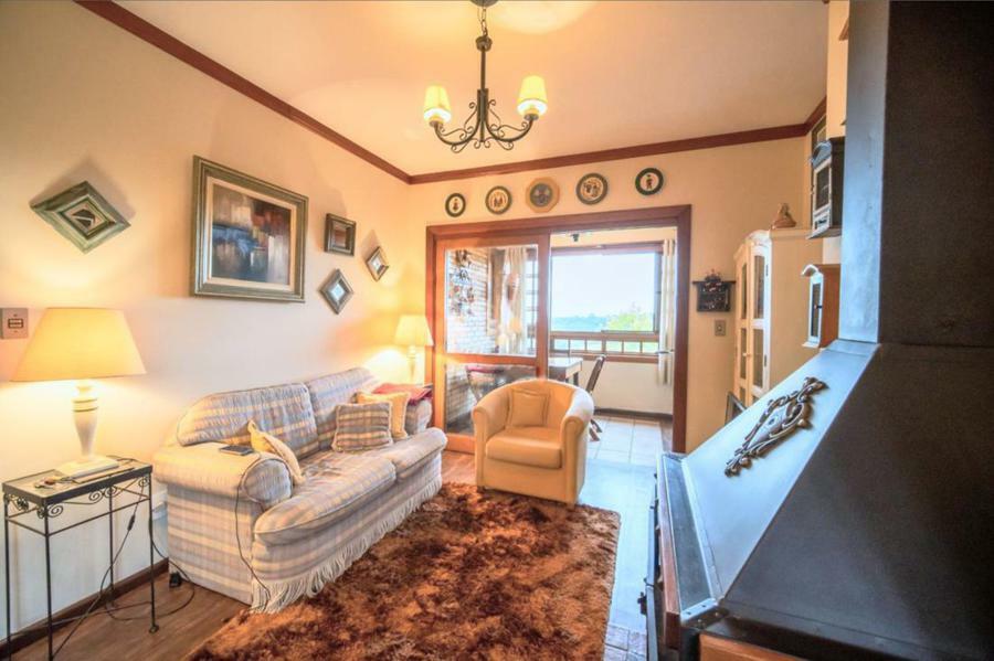 Corretor Gramado e Canela Vende: Semi mobiliado, com vista permanente para o Vale. Apartamento com 3 dormitórios (2 suítes), living com lareira, estar íntimo com lareira, cozinha, sacada integrada com churrasqueira, lavanderia e garagem.