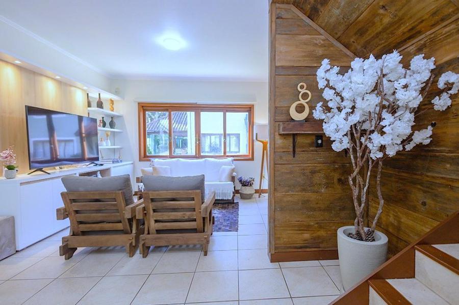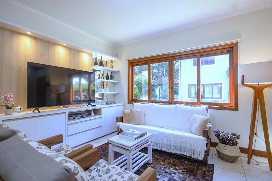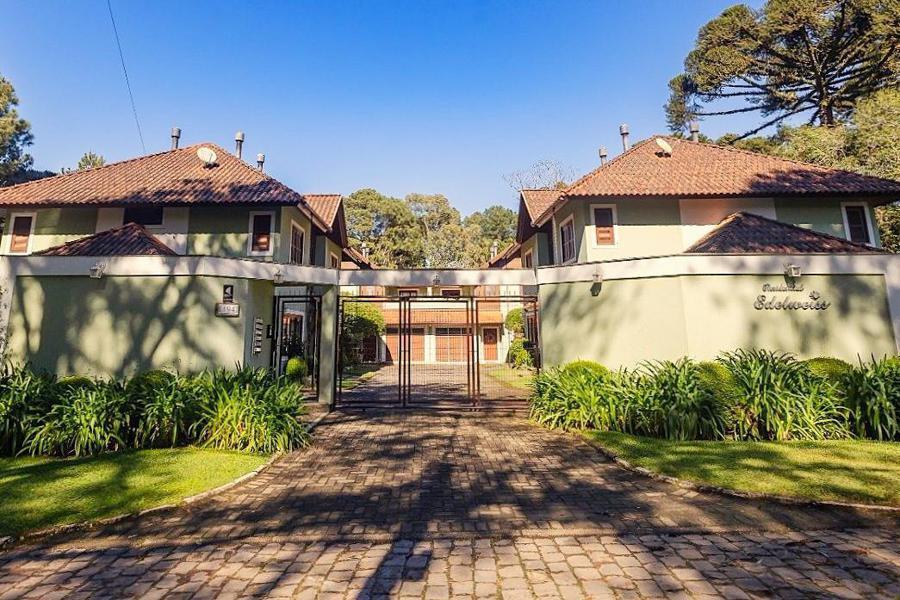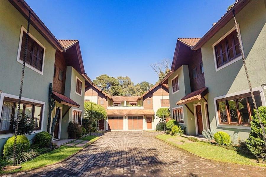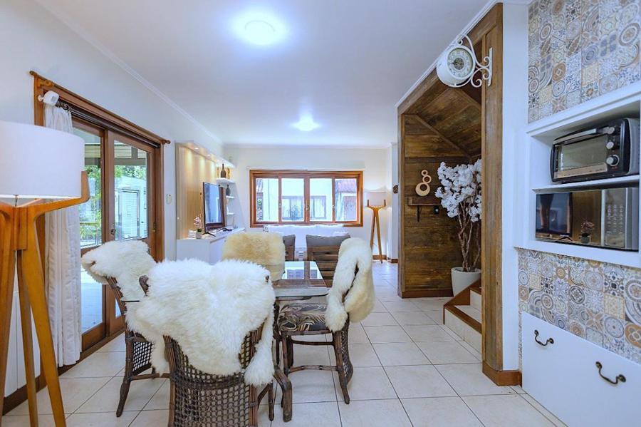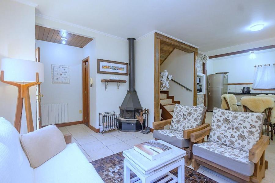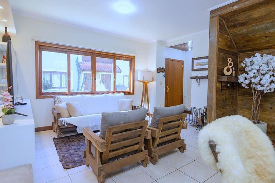 Corretor Gramado e Canela vende: Casa geminada em condomínio próximo ao Laje de Pedra em excelente oferta. Possui 2 dormitórios, (sendo 2 suítes), hall, living, lareira, lavabo, cozinha americana, área de serviço, espaço zen ou jardim de inverno, pátio privativo com pergolado, vaga de estacionamento..
