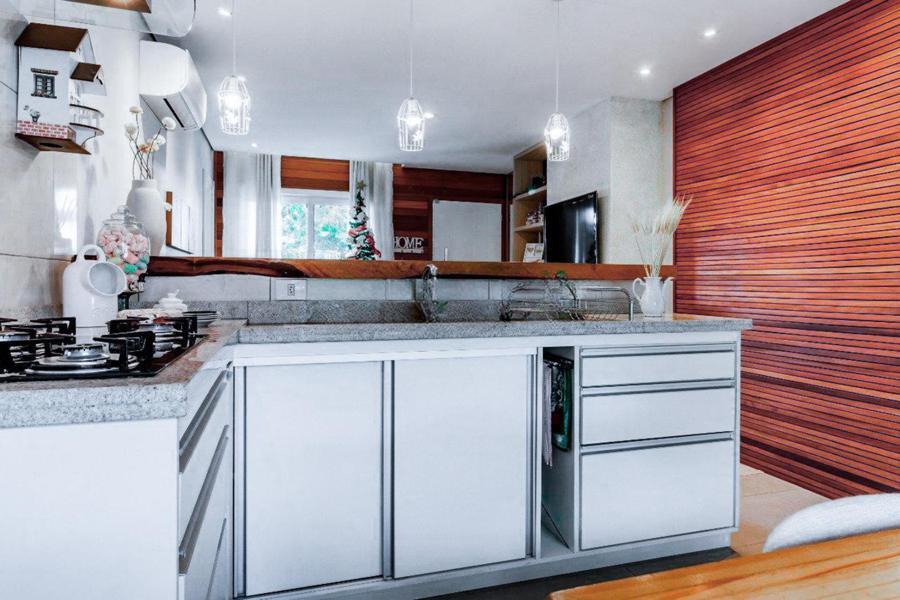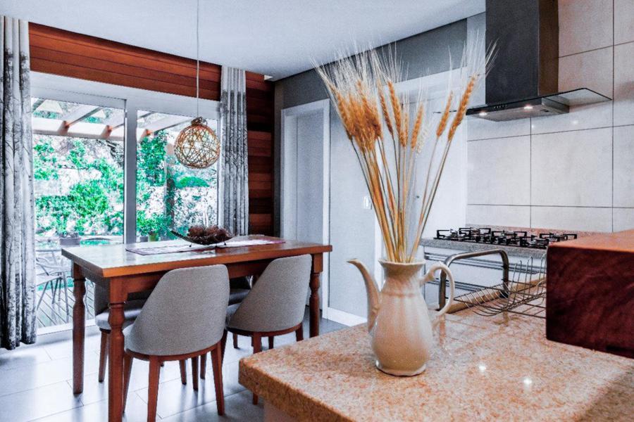 Corretor Gramado e Canela vende: Possui living de Sala de estar com lareira a lenha integrada à cozinha e sala de jantar. A cozinha está 100% equipada com eletrodomésticos de ótima qualidade. Espaço gourmet com churrasqueira. Três dormitórios, sendo uma suíte com hidromassagem. Pergolado coberto com vidro integrado ao jardim, com um lindo fogo de chão. Todas as madeiras utilizadas na construção são de grápia. Esquadrias em PVC com vidros duplos. Gesso acartonado para maior acabamento e qualidade. Água quente e splits instalados, acabamentos de alto padrão. Pátio com separação entre área seca (calçada) e área molhada (grama) para facilitar o cuidado com os pets. Excelente orientação solar. Casa próxima a todas as conveniências como restaurantes, mercados, padarias, escolas e outros.