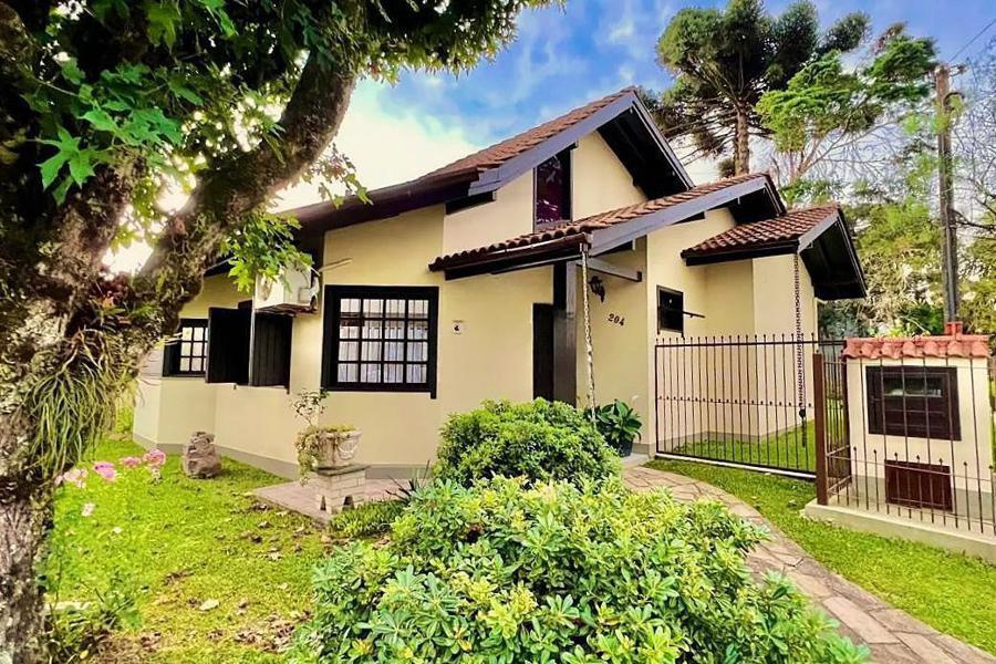 Corretor Gramado e Canela vende: Casa em terreno amplo de esquina lcalizada em bairro nobre a poucos metros do centro de Canela. Possui 3 dormitórios, dois sendo no térreo e o terceiro no mezanino, living amplo com espera para lareira, lavabo, cozinha separada, área de serviço, banheiro social, esapço gourmet, gragem e um aplo terreno com lindo jardim.