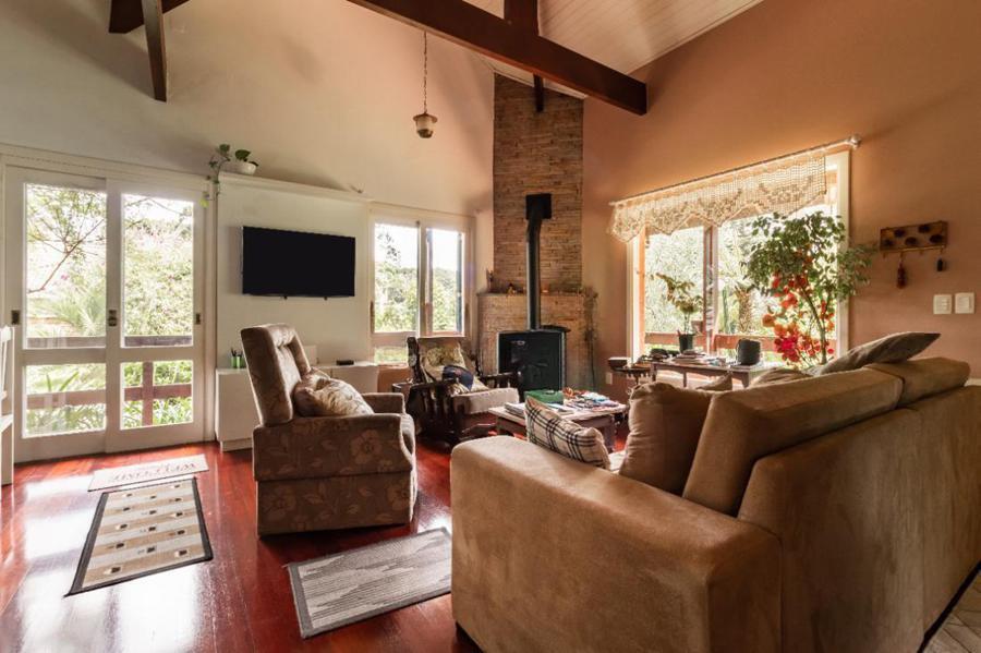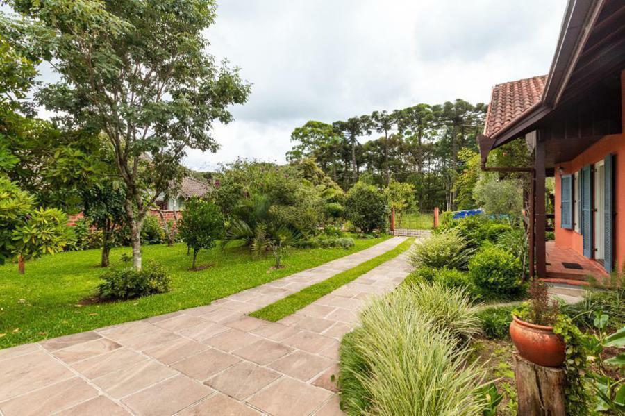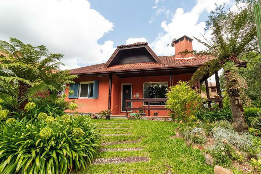 Corretor Gramado e Canela vende em Canela RS: Casa consntruída em dois lotes está localizada em uma rua calma e arborizada de Canela, a apenas 1,9 km da Catedral de Pedra, praticamente toda térrea, com três suítes mais lavabo, totalizando 150 m² privativos. O piso é de tabuão, todas as janelas possuem tela mosquiteiro, possui um salão gourmet com churrasqueia.
