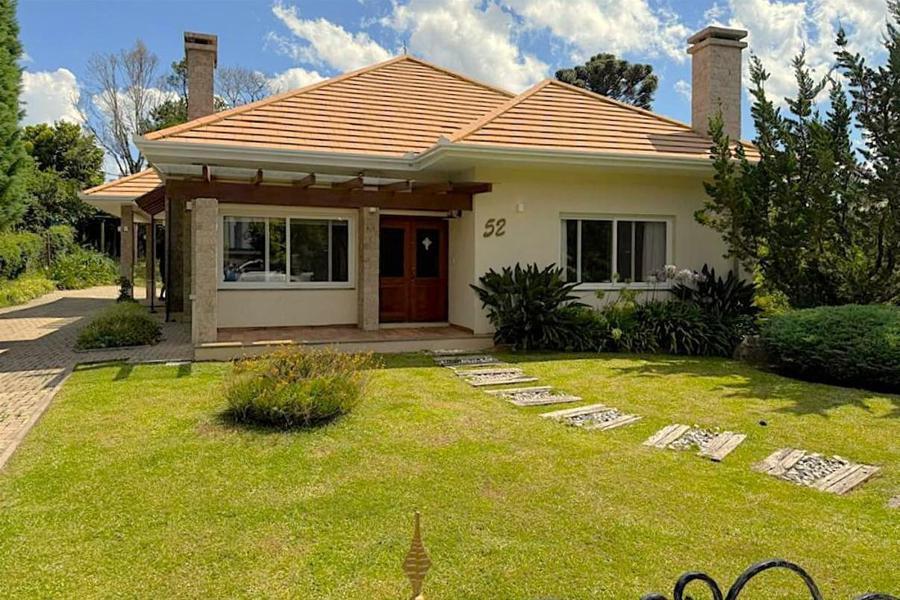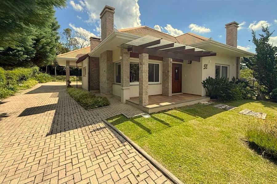 Corretor Gramado e Canela vende: Casa com 3 dormitórios, 2 suítes, (01 másters com closet e hidromassagem), móveis fios, lavanderia, lavabo, cozinha integrada com churrasqueira, sala de estar, sala de jantar, um gabinete/biblioteca com lareira, esperas para Split, aquecimento de piso nos banheiros e sistema de aspiração. em Bairro Residencial tranquilo, junto a natureza, e a poucos minutos do Centro de Gramado.