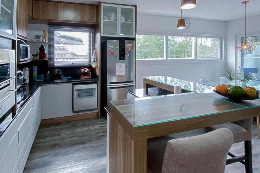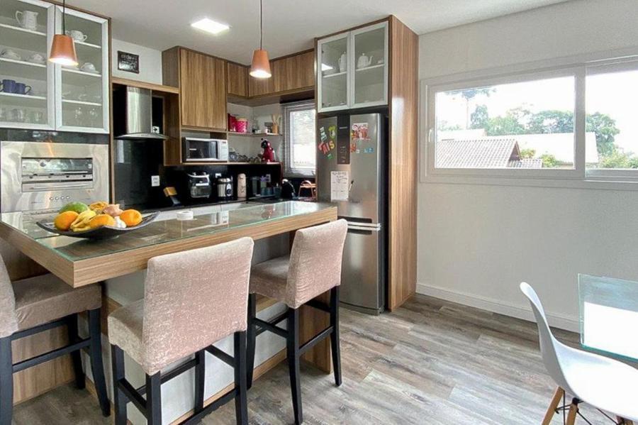 Corretor Gramado e Canela vende: Semi mobiliada, perto do centro. Casa com 3 dromitórios (2 suítes), banheiro social, living com lareira e sacada, gabinete, cozinha americana, lavanderia, pátio e vagas de garagens cobertas com churrasqueira.