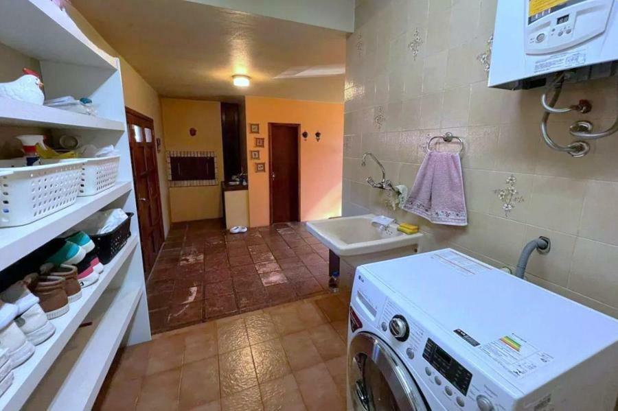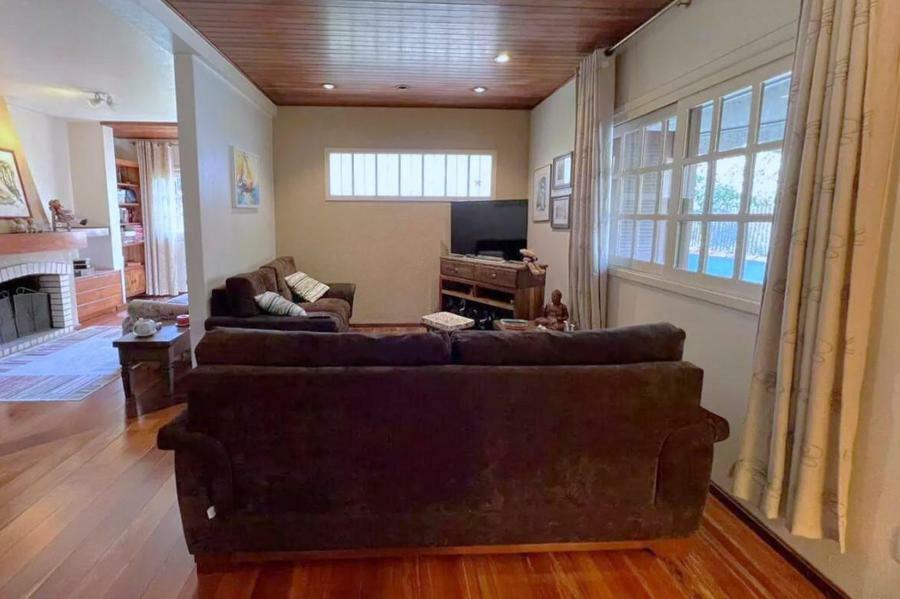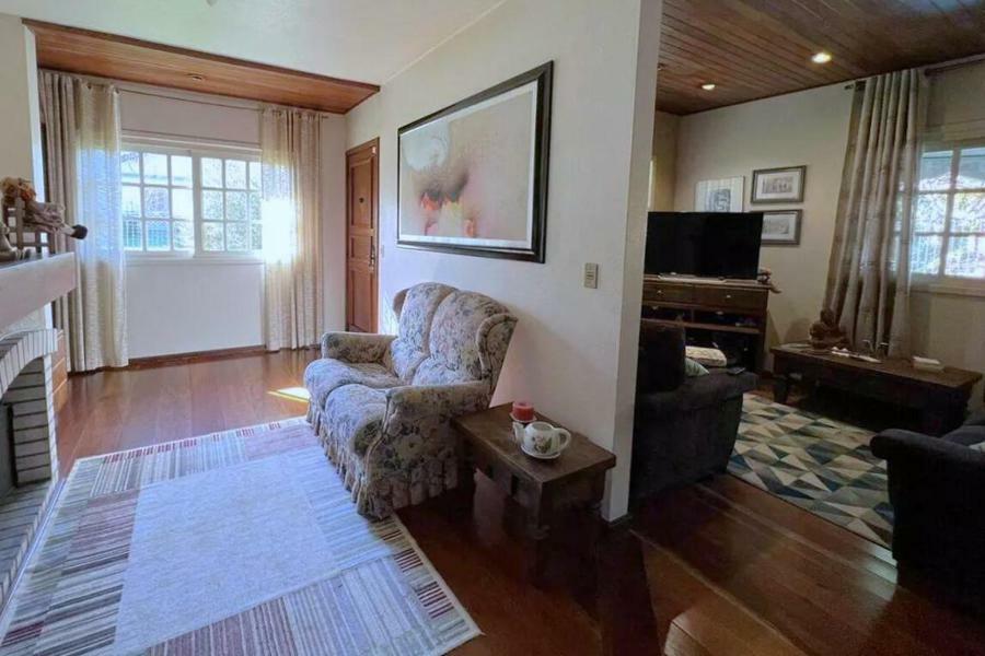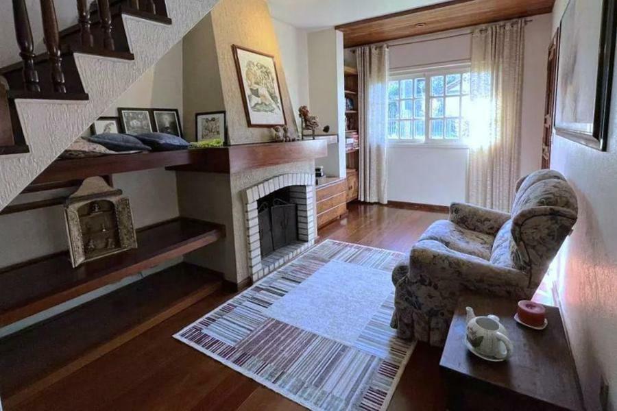 Corretor Gramado e Canela vende: Casa semi mobiliada, o andar térreo conta com sala de estar com lareira e sala de TV, cozinha fechada, sala de jantar, uma suíte, um dormitório, banheiro social, garagem com churrasqueira, lavanderia e lavabo, no segundo piso há sala de estar, escritório e um dormitório.