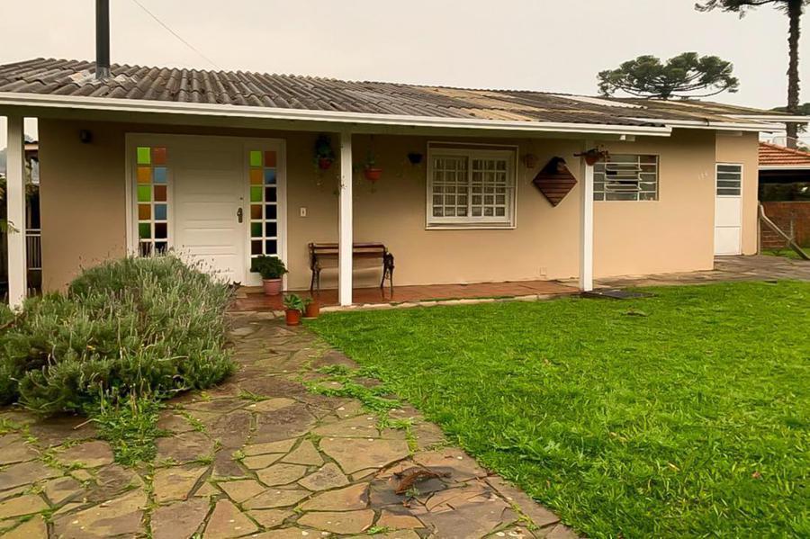 Corretor Gramado e Canela vende: Casa com 3 quartos, sendo 1 suíte, lavabo, cozinha, vaga de garagem, quiosque com lavanderia e banheiro, sala de estar com lareira. Terreno grande e plano, localizada em bairro residencial próximo ao Centro de Canela.