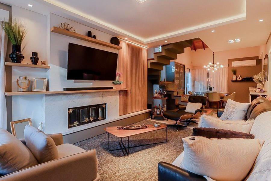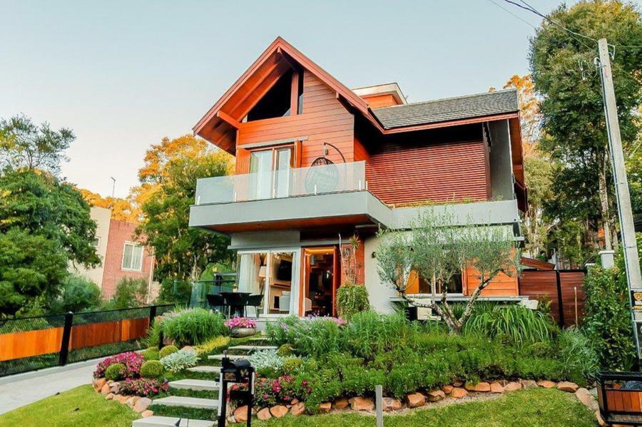 Corretor Gramado e Canela vende : Casa localizada em uma rua tranquila, possui um living amplo, cozinha, jantar com pé direito duplo, estar com lareira, lavabo e área de serviço. Composta por três suítes, sendo uma suíte no térreo e duas no andar superior, uma delas suíte máster com closet e ampla sacada. Pérgula para abrigo de veículos e espaço gourmet com churrasqueira e espera para bifeteira. - Alto padrão de construção; - Infraestrutura para água quente, split e calefação e aquecimento solar; - Banheiros com piso aquecido; - Esquadrias em PVC com vidro duplo. O loteamento Vivendas do Arvoredo possui uma localização tranquila e privilegiada, já que se encontra próximo à Avenida das Hortênsias que liga as cidades de Gramado e Canela.