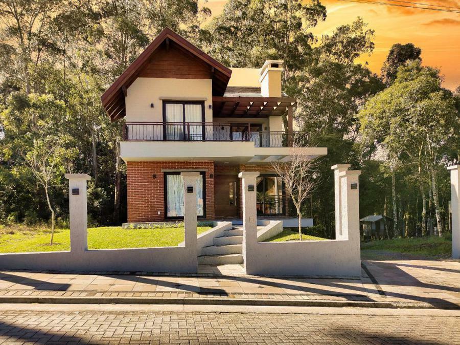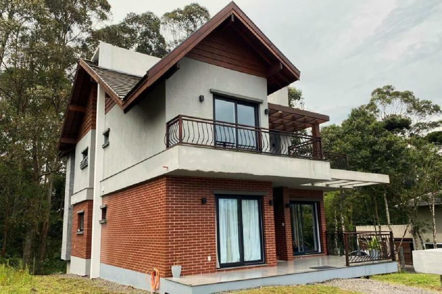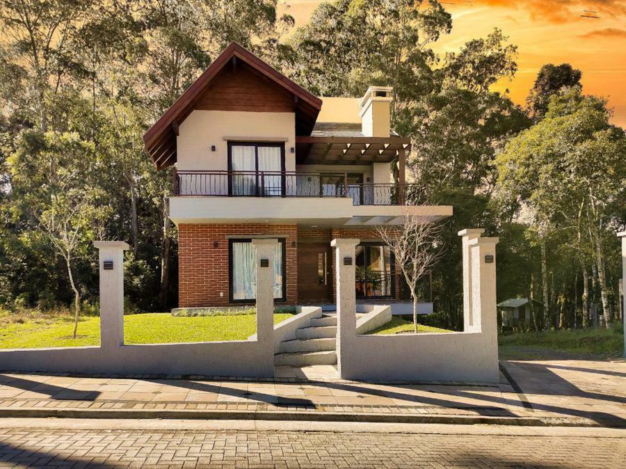 Corretor Gramado e Canela vende: Semi mobiliada, praticamente nova. Casa com 3 dormitórios (suítes), lavabo, living com lareira e varanda com churrasqueira, estar íntimo, cozinha americana, lavanderia, banheiros auxiliar, pátio e garagens.