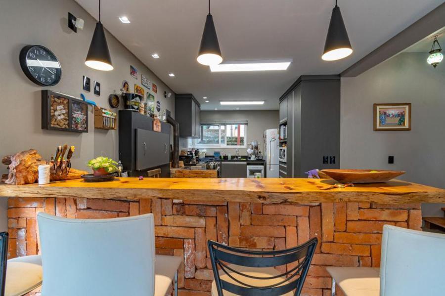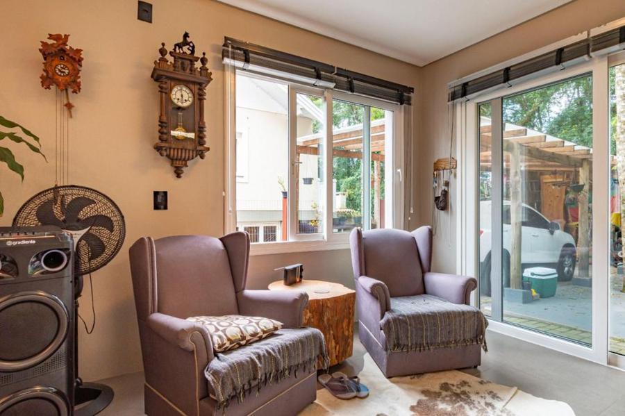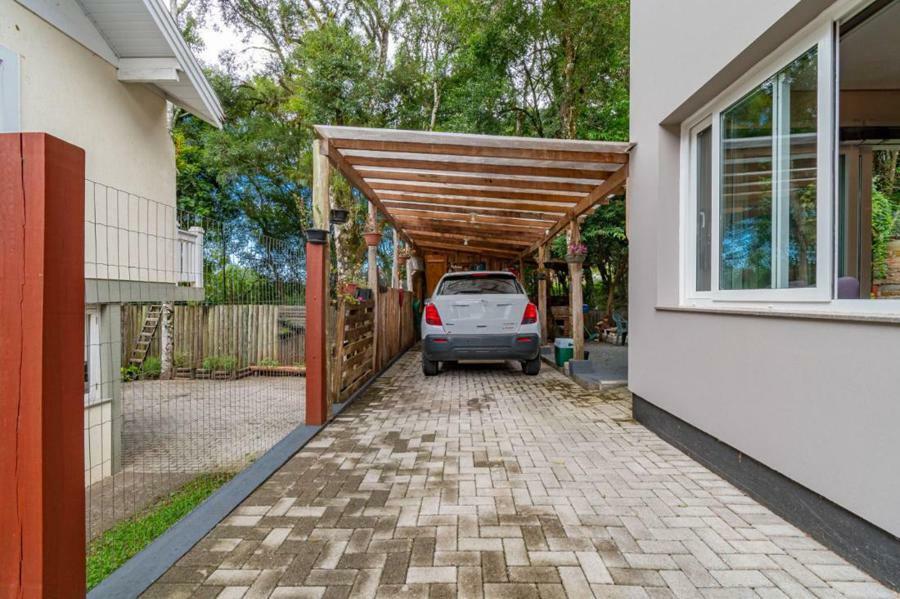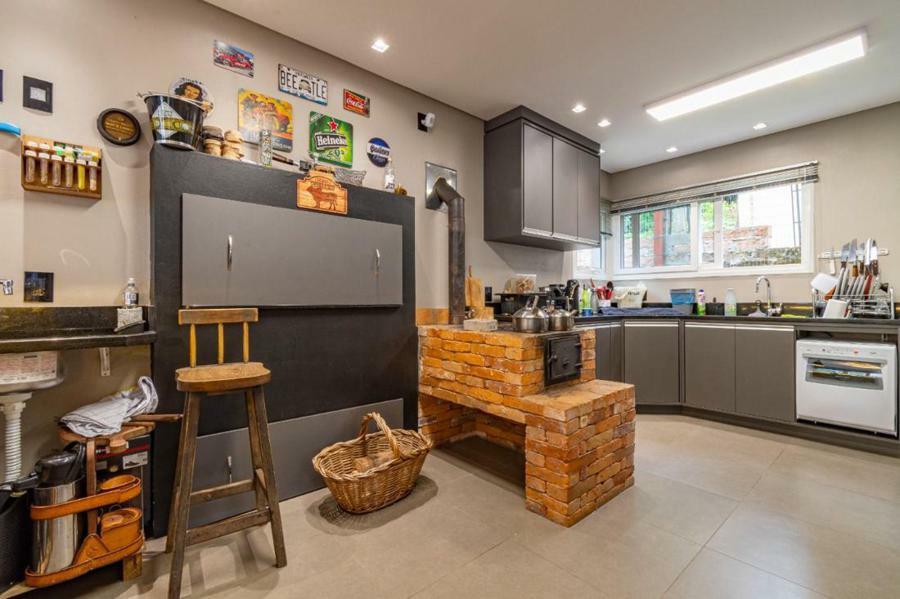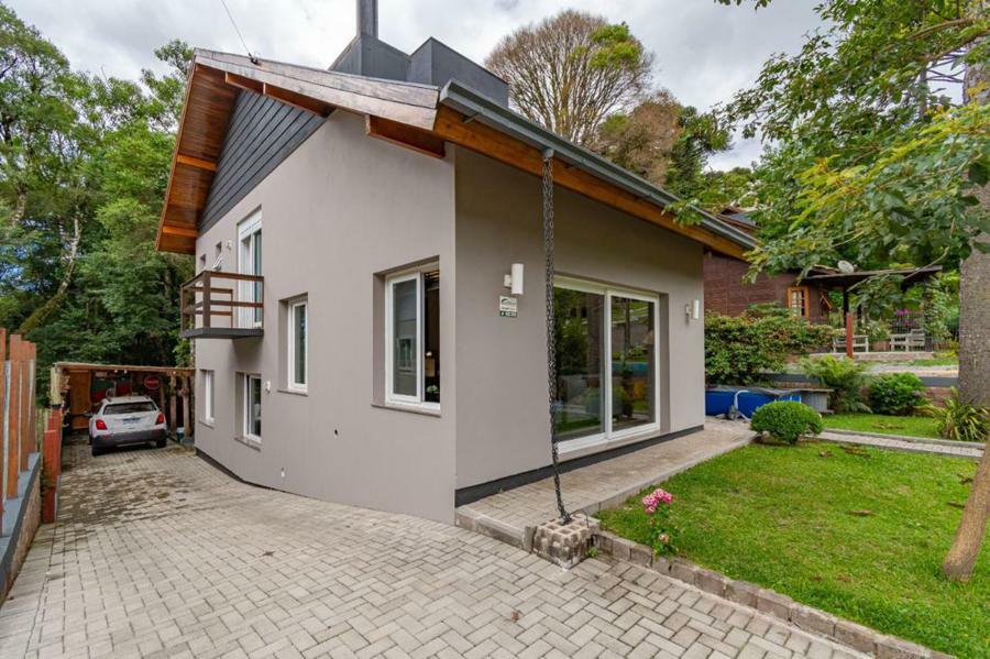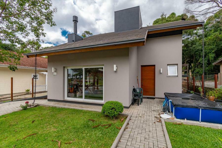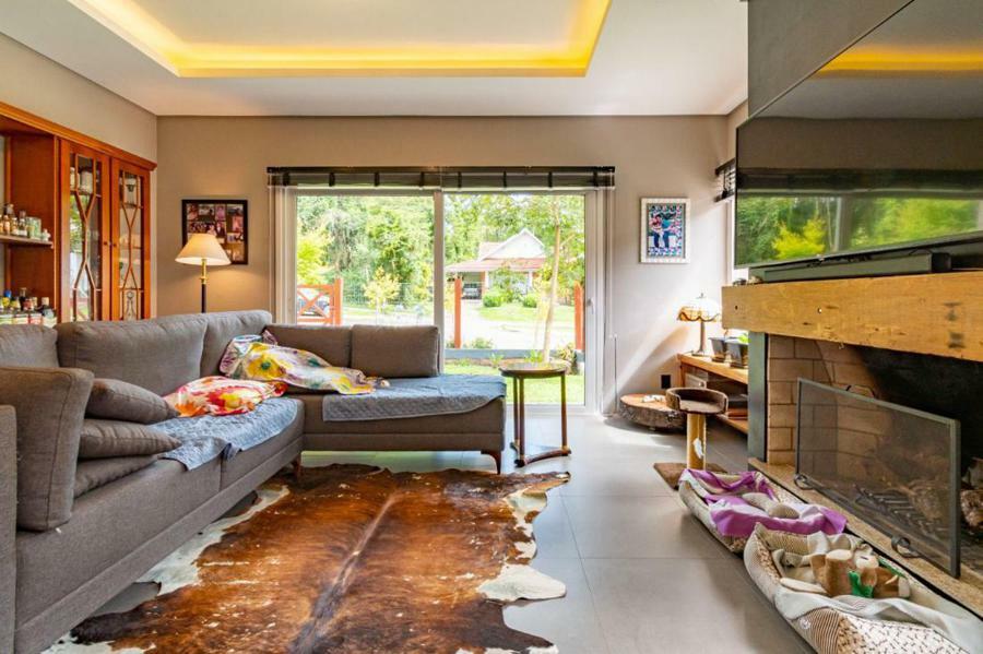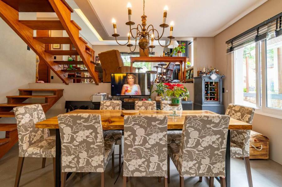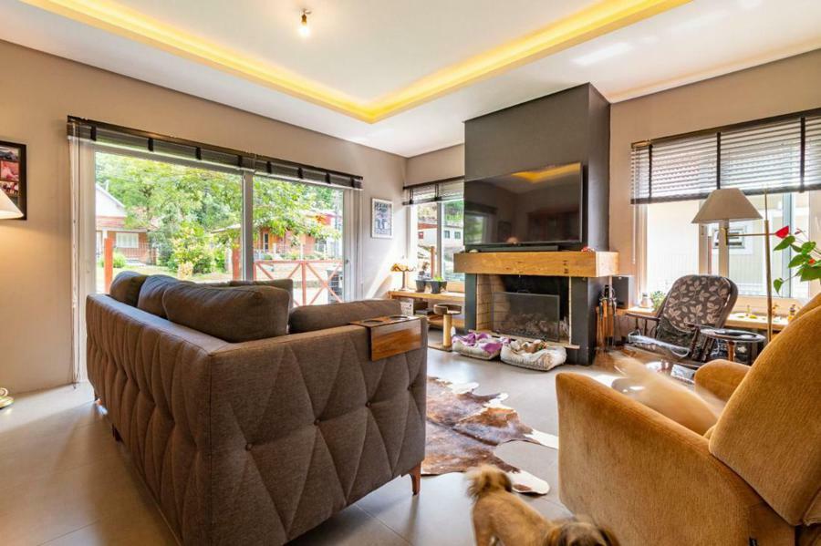 Corretor Gramado e Canela vende: Semi mobiliada, praticamente nova. Casa 3 dormitórios (1 suíte com closet), lavabo, living com lareira, cozinha americana com churrasqueira, área de serviço e depósito, pátio e garagens.