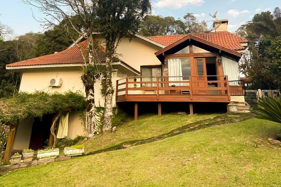Corretor Gramado e Canela vende: Pátio Amplo e Jardim, deck externo e um lindo jardim, garagem para 02 Carros:, ótima posição solar. Living Amplo com Lareira a Lenha, lavabo, cozinha Americana, área gourmet, área de serviço e depósito, 3 dormitórios, sendo 01 suíte com hidromassagem,
