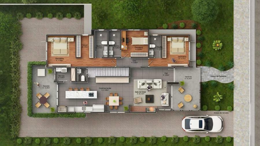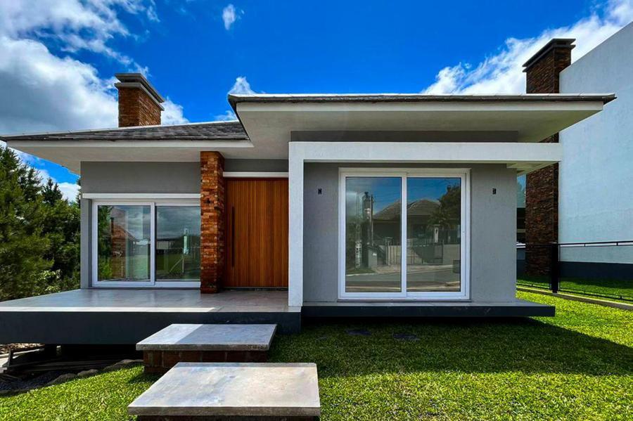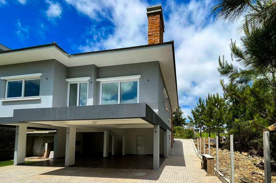 Corretor Gramado e Canela vende: A casa possui 3 suítes, lavabo, hall de entrada, lareira, lavanderia, sala de estar e jantar com cozinha gourmet integrada a uma incrível vista da sacada para o vale. Garagem para até 3 carros.