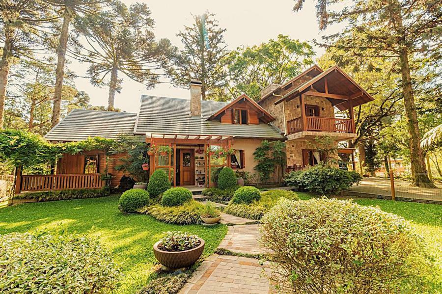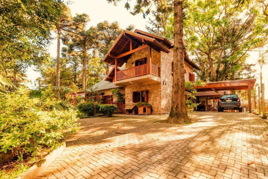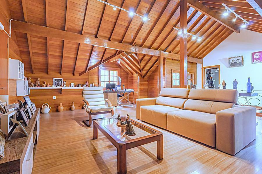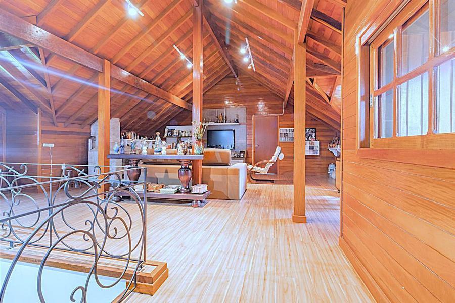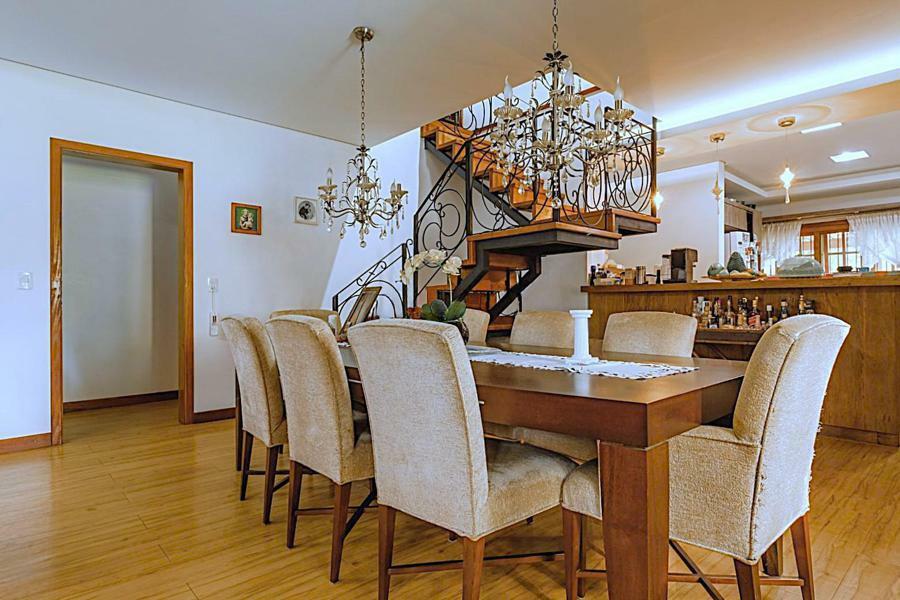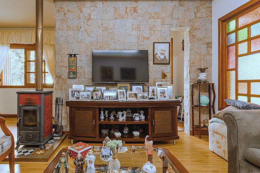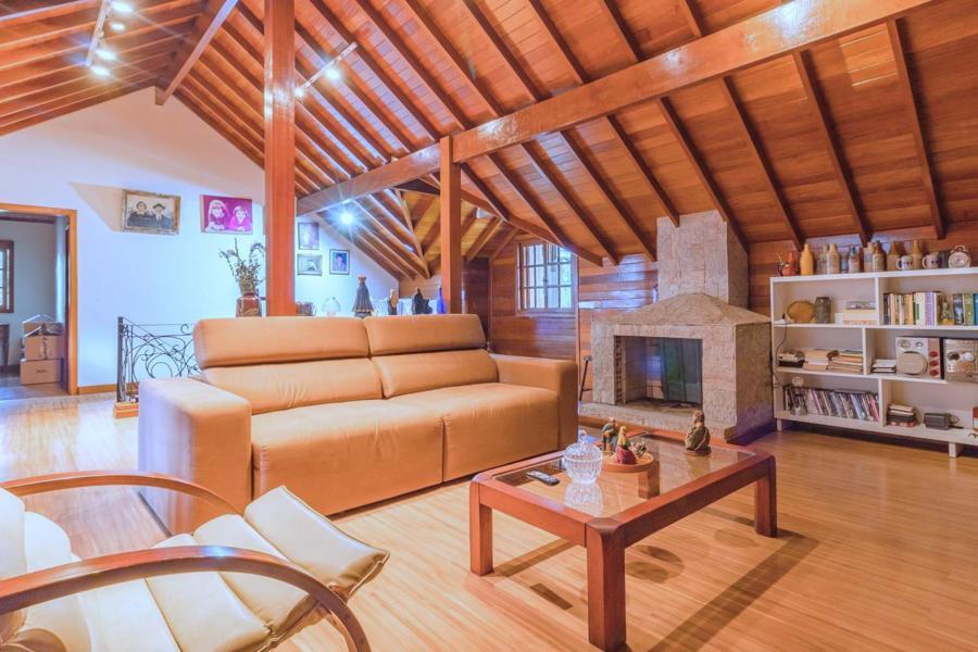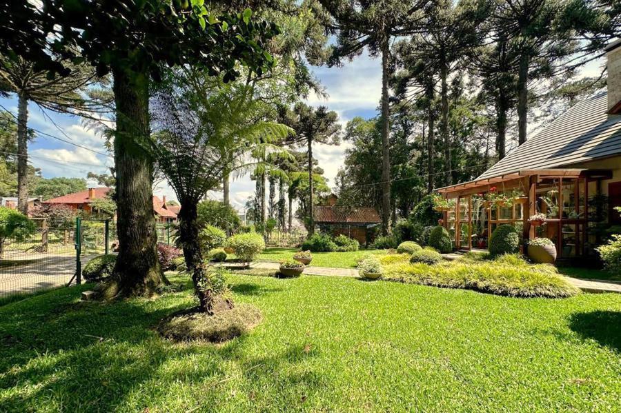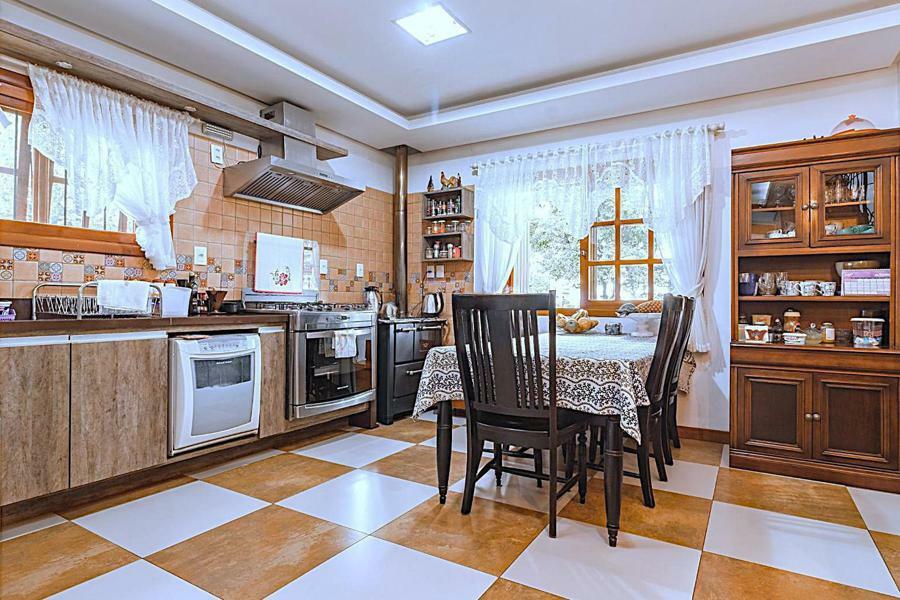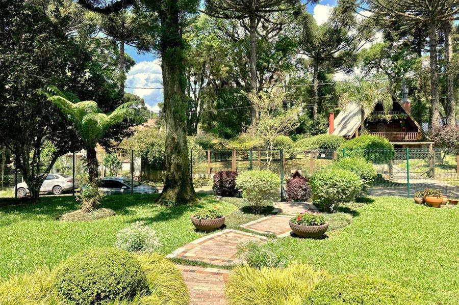 Corretor Gramado e Canela vende: . Casa com hall de entrada, sala de estar, sala de jantar integrada a cozinha, área de serviço separada com banheiro auxiliar, lavabo, 2 suítes térreas, sendo 1 com closet e sacadas. Pavimento superior com ampla sala de estar com lareira 1 suíte máster com sacada ,e closet e 1 dormitório. Amplo terreno com horta, terreno totalmente cercado.
