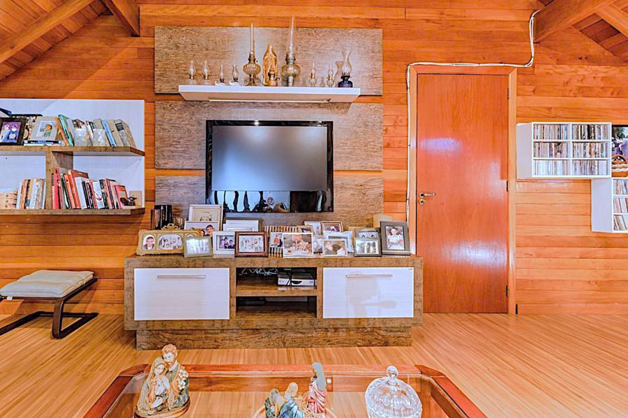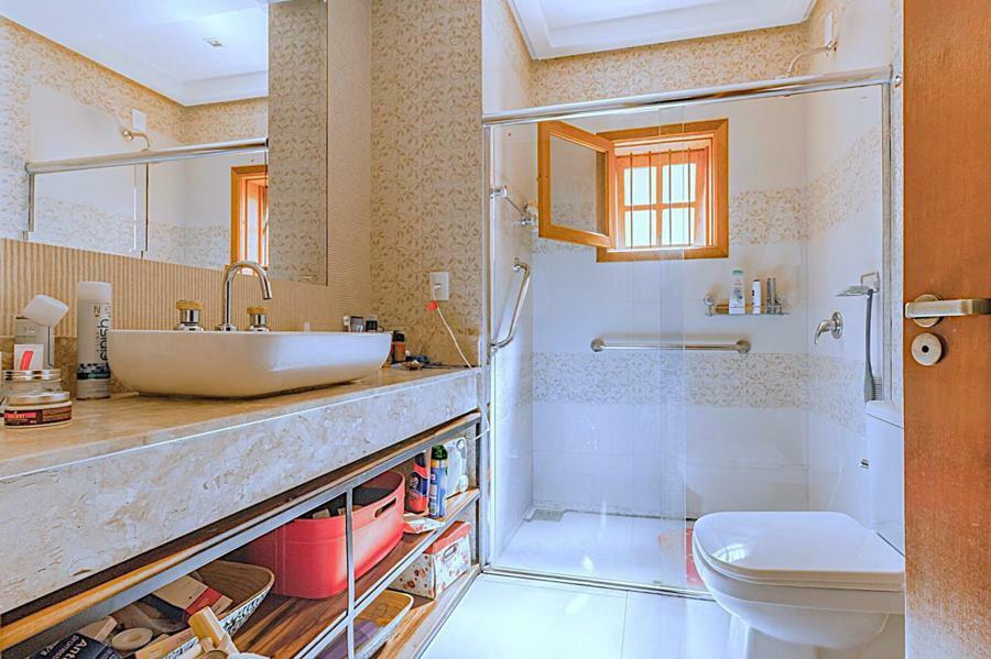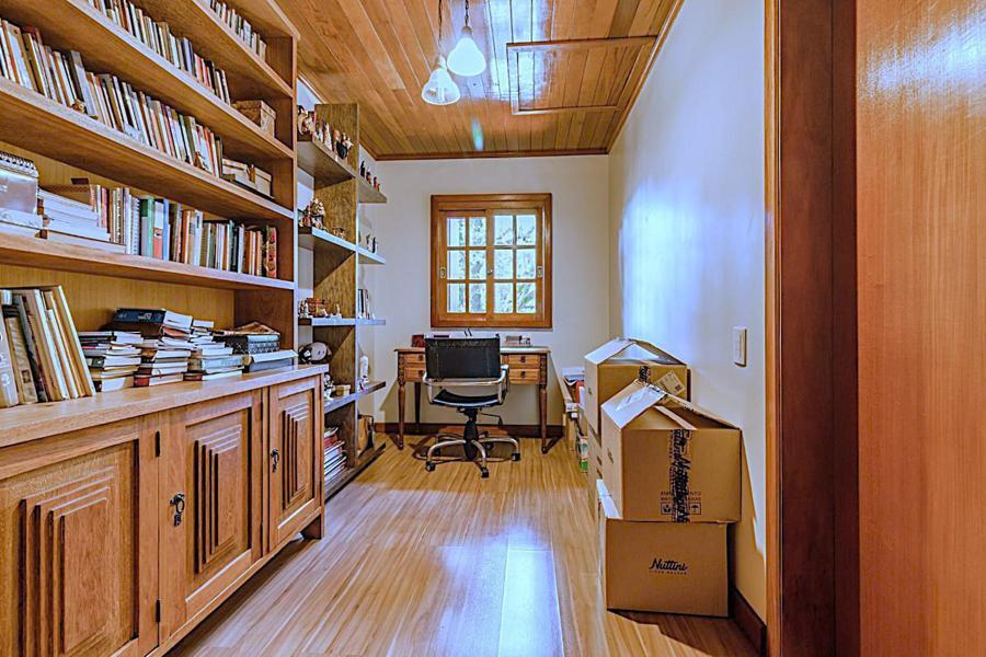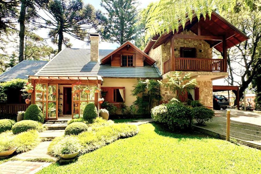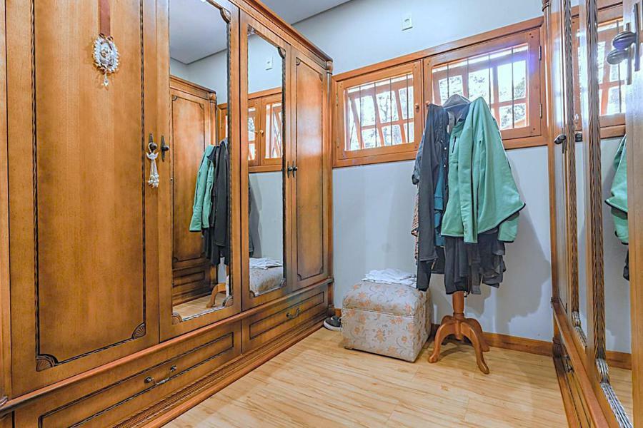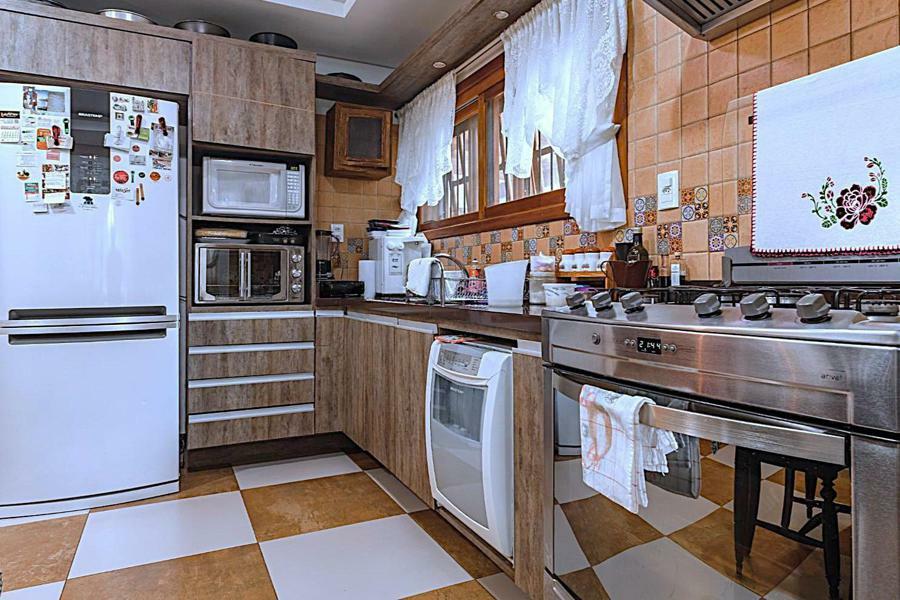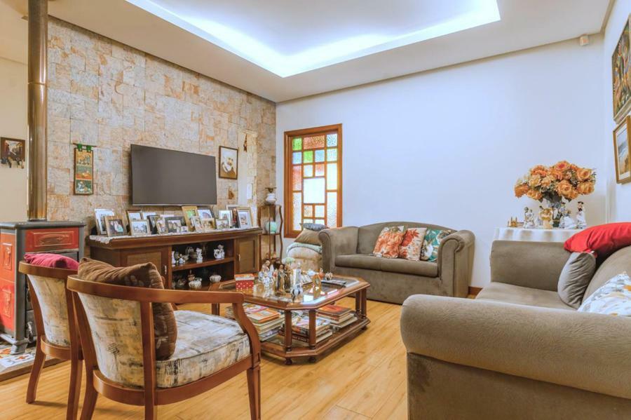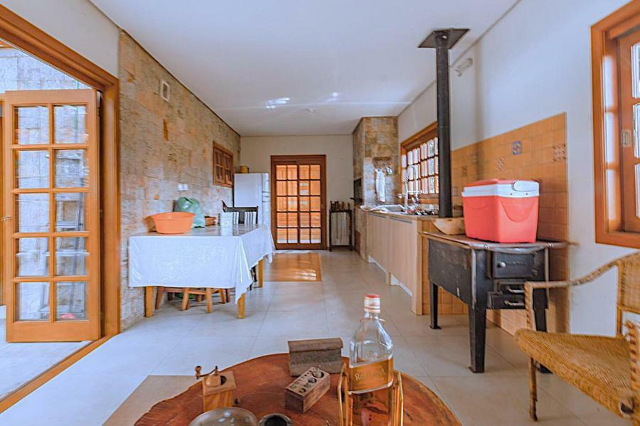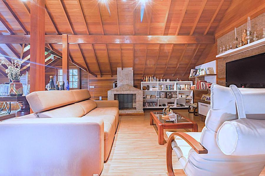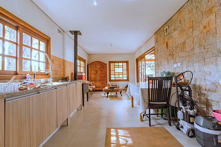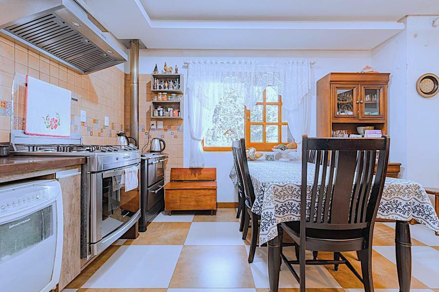 Corretor Gramado e Canela vende: . Casa com hall de entrada, sala de estar, sala de jantar integrada a cozinha, área de serviço separada com banheiro auxiliar, lavabo, 2 suítes térreas, sendo 1 com closet e sacadas. Pavimento superior com ampla sala de estar com lareira 1 suíte máster com sacada ,e closet e 1 dormitório. Amplo terreno com horta, terreno totalmente cercado.