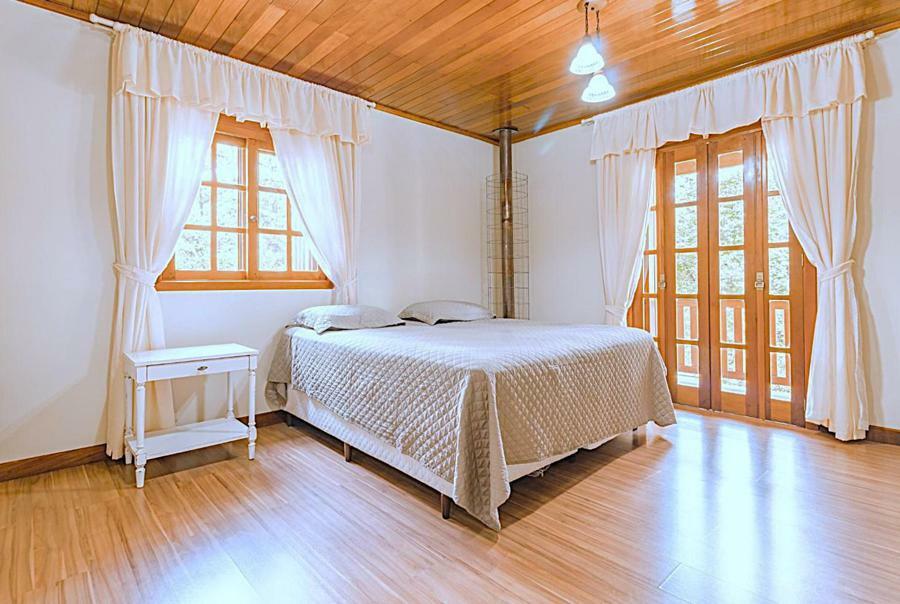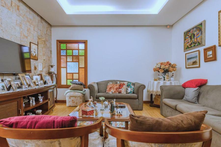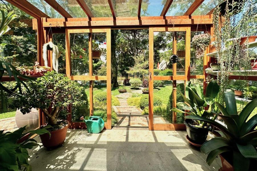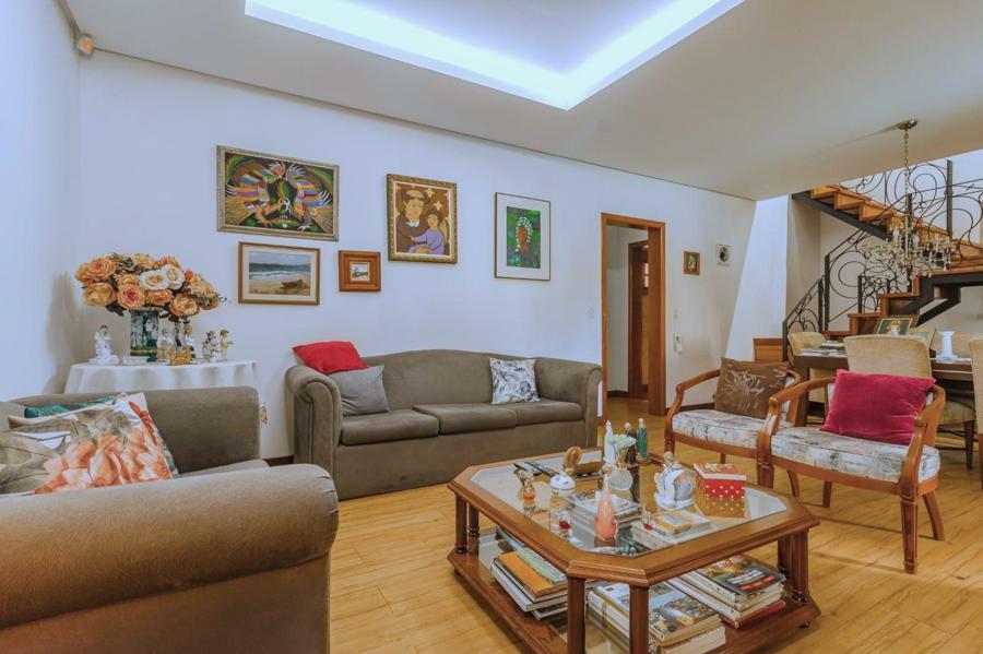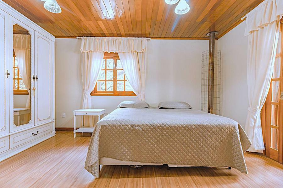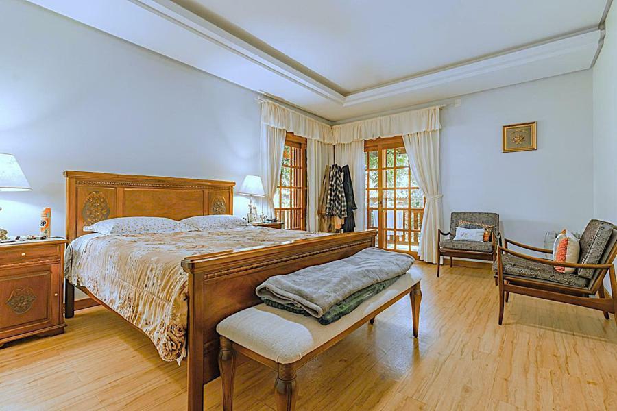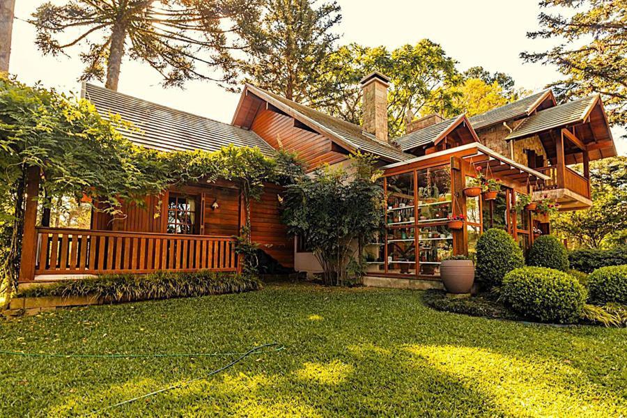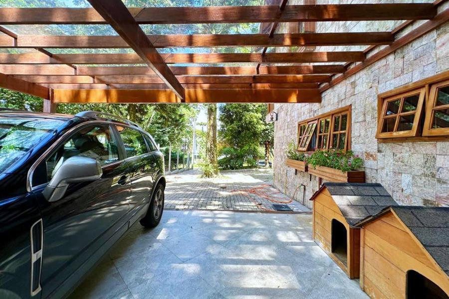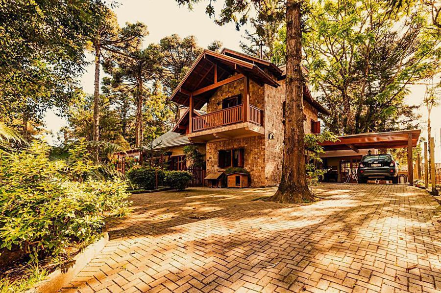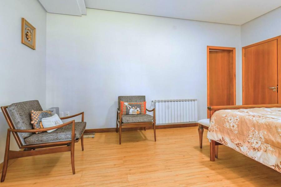 Corretor Gramado e Canela vende: . Casa com hall de entrada, sala de estar, sala de jantar integrada a cozinha, área de serviço separada com banheiro auxiliar, lavabo, 2 suítes térreas, sendo 1 com closet e sacadas. Pavimento superior com ampla sala de estar com lareira 1 suíte máster com sacada ,e closet e 1 dormitório. Amplo terreno com horta, terreno totalmente cercado.