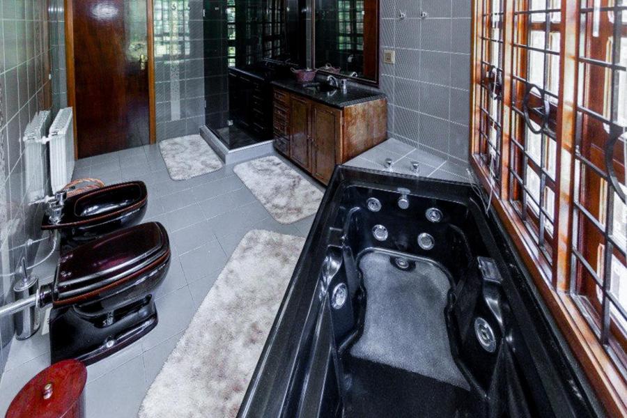 Entre os diferenciais, destacam-se a caldeira de calefação da Broilo, instalada em sala própria, com capacidade para aquecer todos os mais de 20 radiadores da casa, com potência suficiente para suportar uma piscina. A casa também possui um sistema de alarme com monitoramento por câmeras. No jardim, há uma casa de ferramentas e um parquinho infantil,