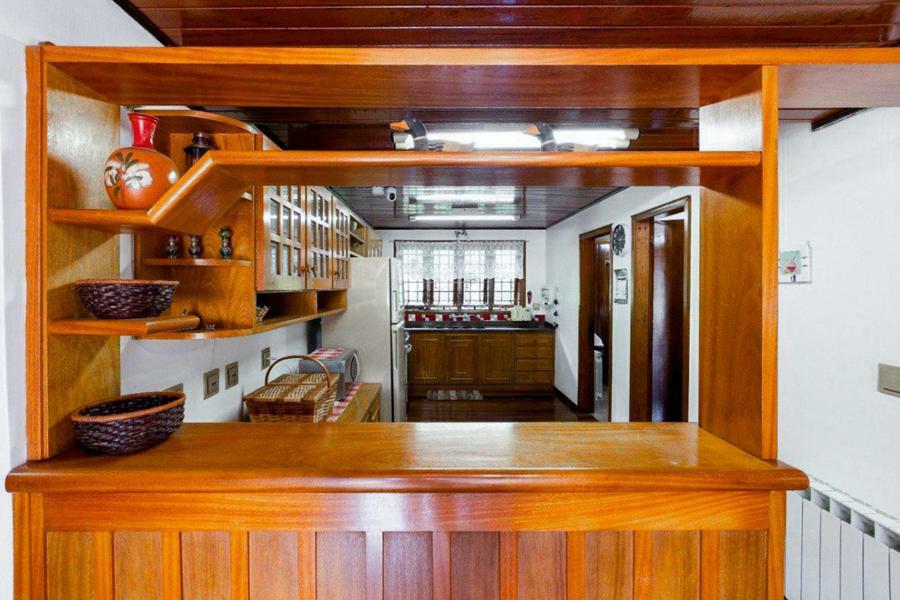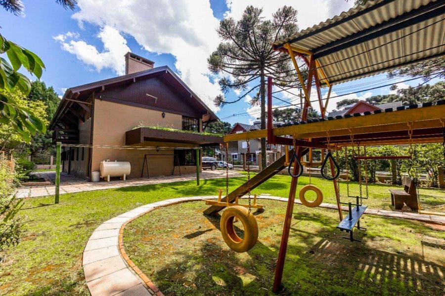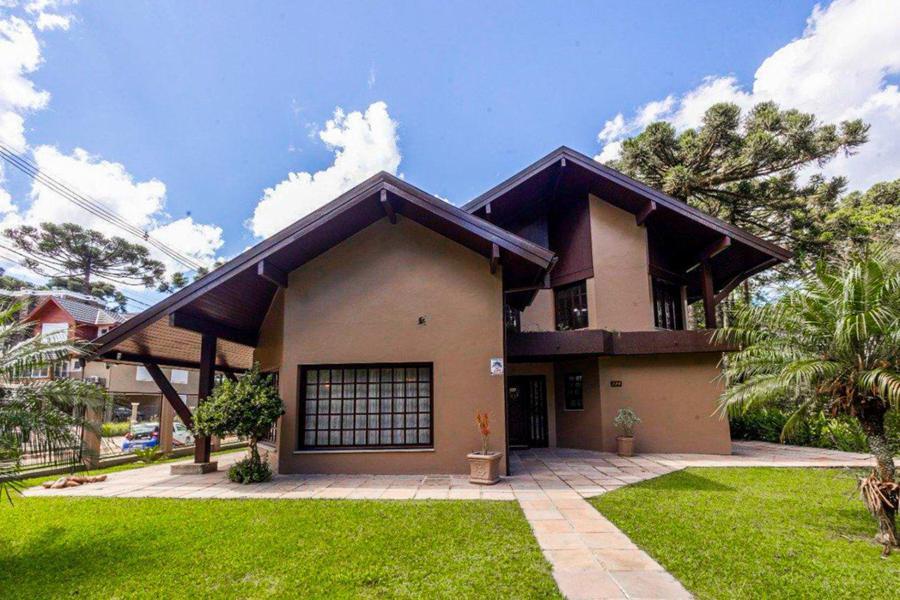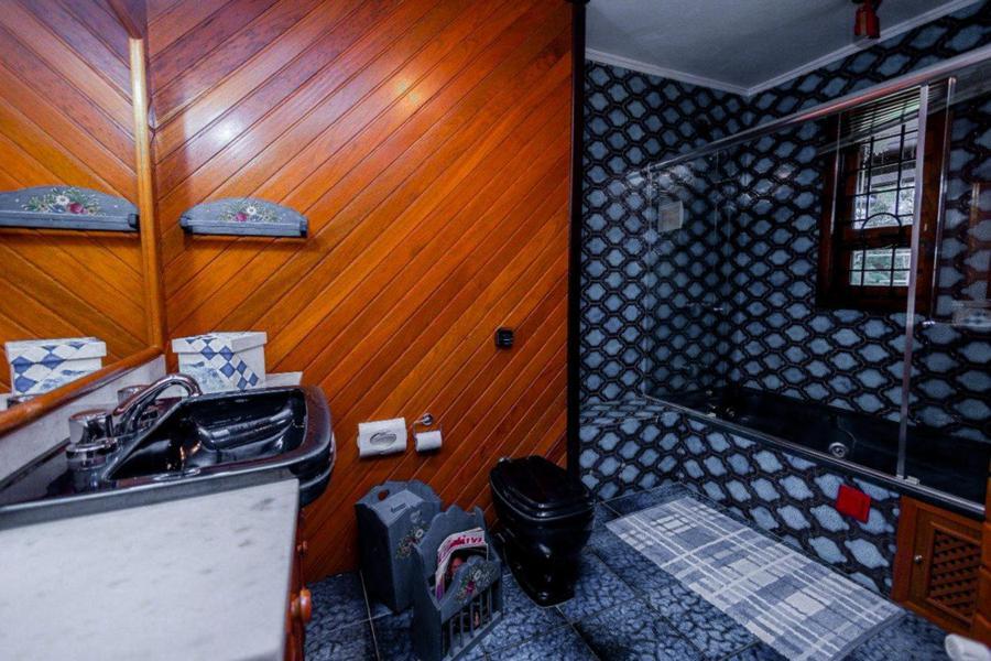 Corretor Gramado e Canela vende: Casa com 3 suítes, duas delas equipadas com banheira de hidromassagem e closets. A área gourmet com sala de jantar integrada, copa e um salão de festas com churrasqueira, lavabo, uma dependência com banheiro que pode ser utilizada como um quarta suíte.