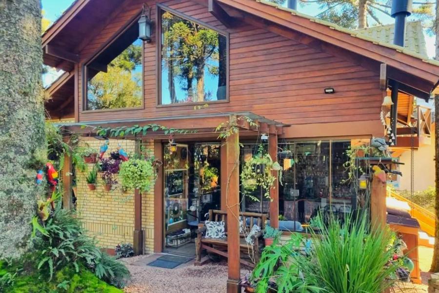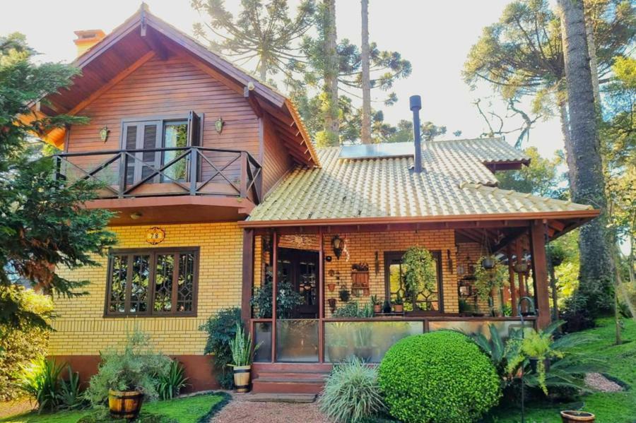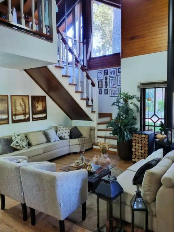 Corretor Gramado e Canela vende: Casa de 4 dormitórios ( 2 suítes). No andar superior ficam as, 2 suítes e 1 quarto com lareira (usado como sala de home theater, atualmente).