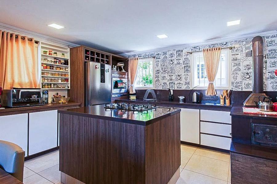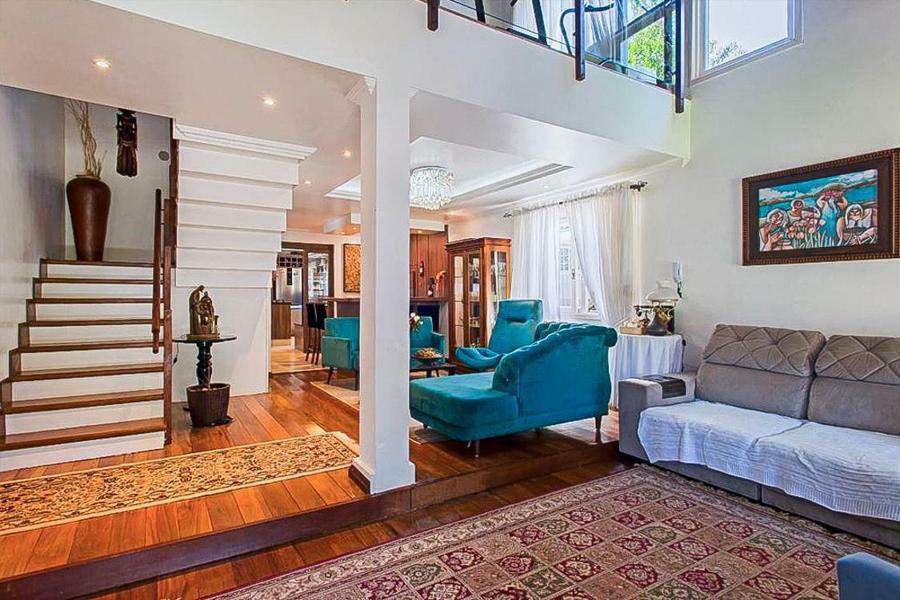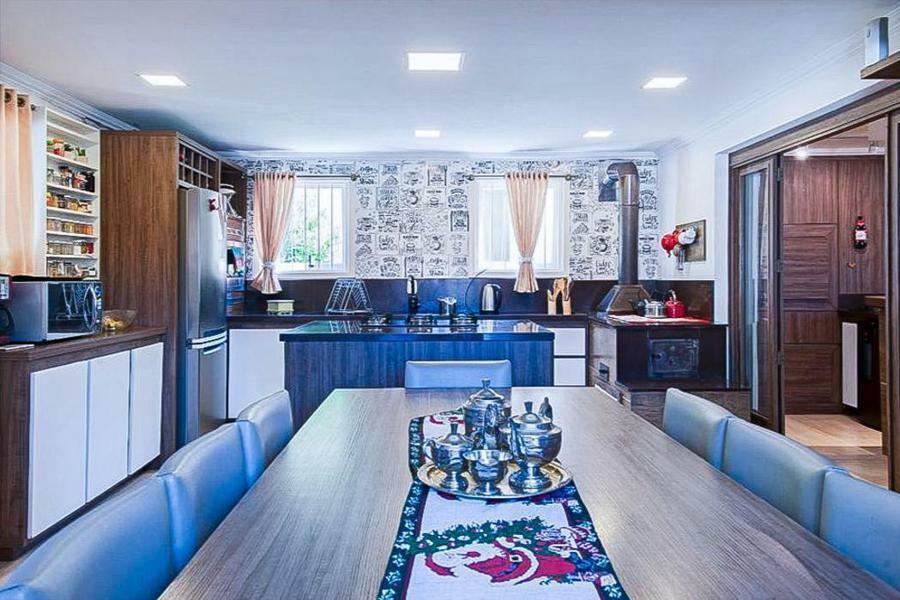 Corretor Gramado e Canela vende: Semi mobiliada, perto da Catedral de pedra. Casa em condomínio com 4 dormitórios (3 suítes), living com espaço gourmet, escritório, lavabo, mezanino, deck externo com churrasqueira, copa-cozinha, lavanderia, pátio e garagens.
