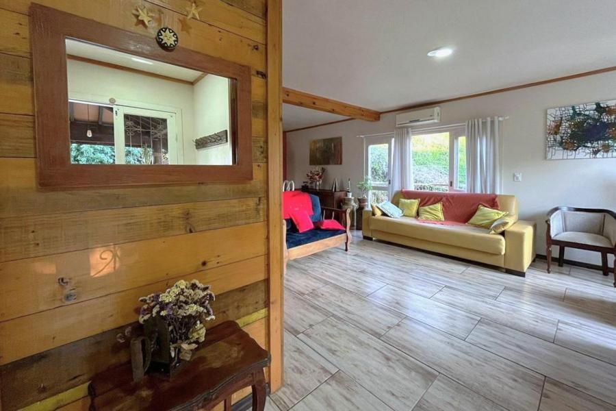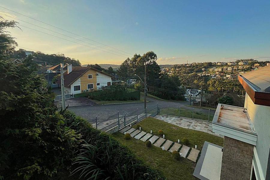 Corretor Gramado e Canela vende: Casa em terreno alto com linda vista , possui 4 dormitórios, living amplo com lareira, estar e jantar integrados a cozinha americana com espaço gourmet, lavabo, vagas de garagem e lindo quintal.