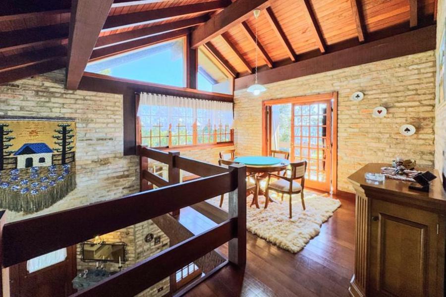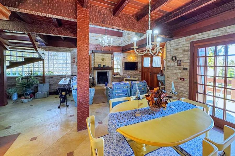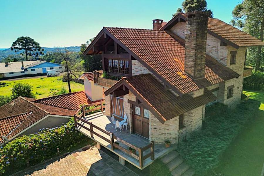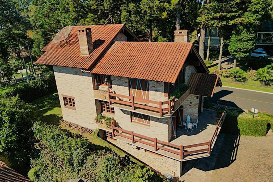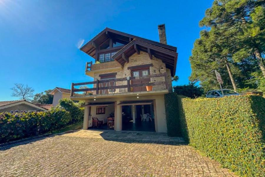 Corretor Gramado e Canela vende: Construída em um amplo terreno de esquina (680,00 M²), com excelente vista panôramica, em bairro residencial seguro e tranquilo, essa linda residência conta com estilo arquitetônico diferenciado. Possui 04 Dormitórios ( sendo 02 suítes uma delas com hidro), Calefação Instalada, Copa, Cozinha integrada, Despensa, salão Gourmet com churrasqueira, estar Íntimo, sala de jogos, mezanino, estar íntimo, área de serviço, ampla sacada, sala de estar com lareira, sala de jantar. vaga de gragem.