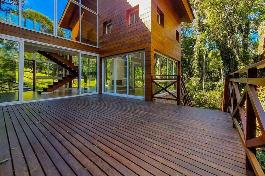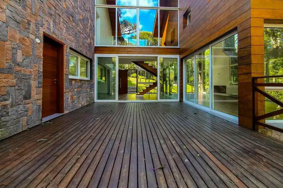Corretor Gramado e Canela vende : Estuda imóvel de menor valor. Casa 4 dormitórios (suítes), lavabo, living com lareira, cozinha americana com churrasqueira, varandas com deck, estar íntimo, terraço com spa, lavanderia e garagens.