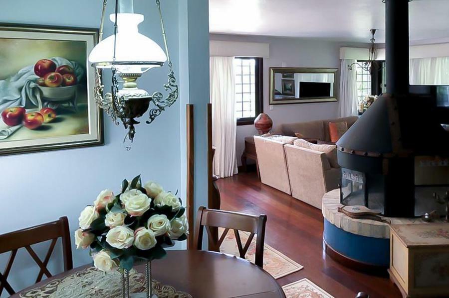 Corretor Gramado e Canela vende: Casa com excelente padrão construtivo em terreno amplo, arborizado em bairro nobre perto do centro. Possui 4 dormitórios sendo 3 suítes , 1 das suítes é considerada máster com hidromassagem, lareira, living integrado, estar, jantar, cozinha separada, área de serviço e 2 vagas cobertas de garagem.