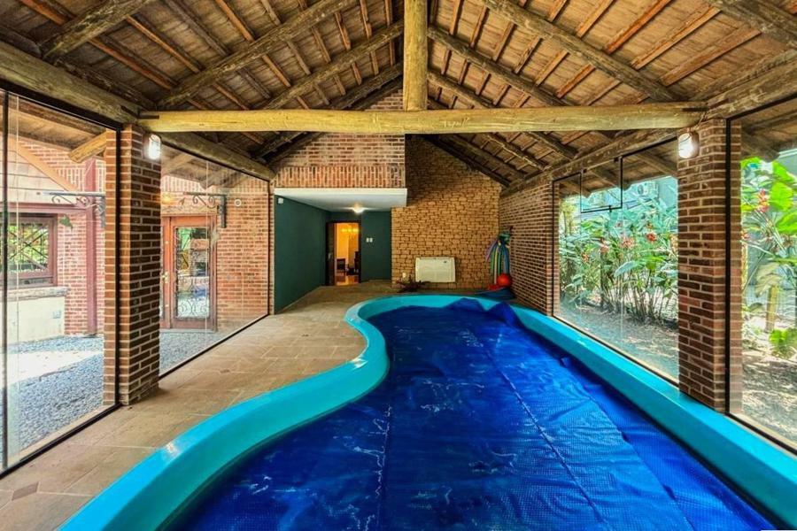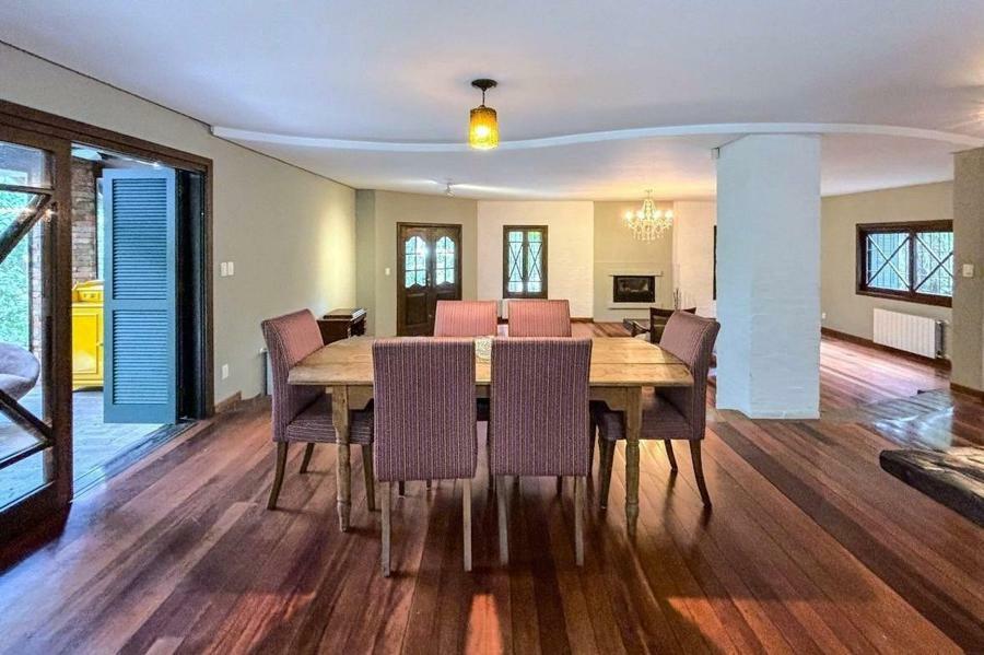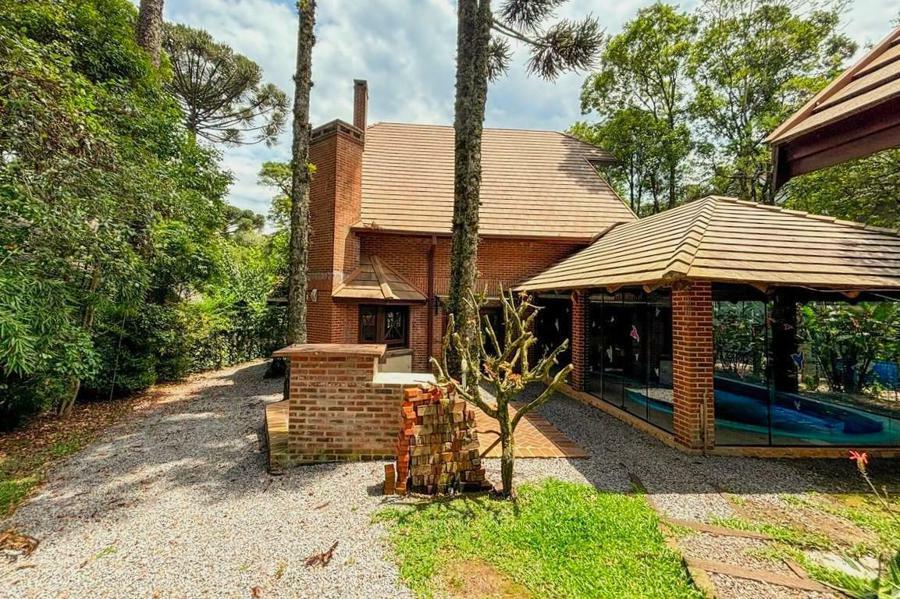 Corretor Gramado e Canela vende : Casa com 4 quartos (3 suítes), sendo 1 máster com closet, lavabo, ampla sala de estar com lareira, cozinha com espaço gourmet com churrasqueira e forno para pizza, calefação, água quente, área externa com parrilla, piscina aquecida coberta, jardim com horta e árvores frutíferas e 2 vagas de garagem.