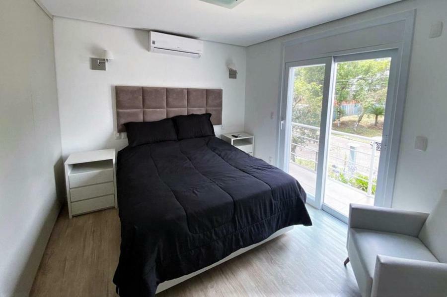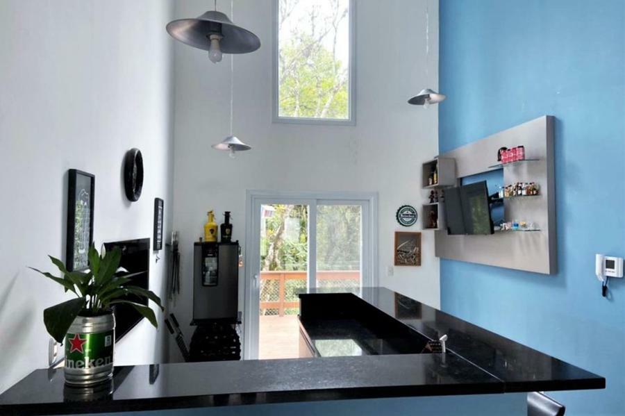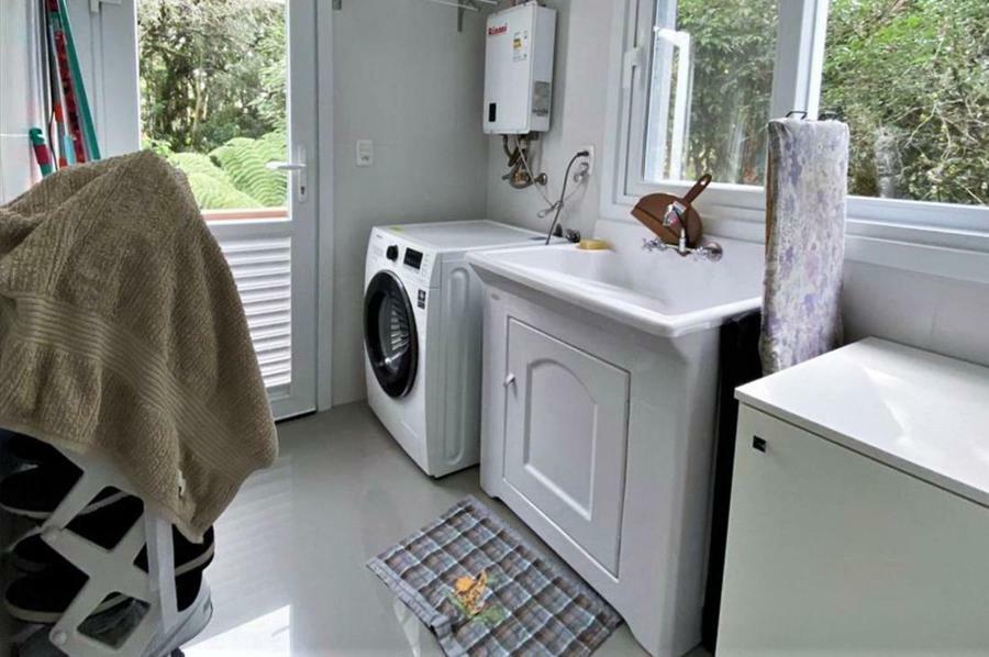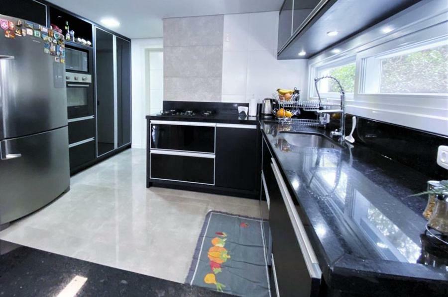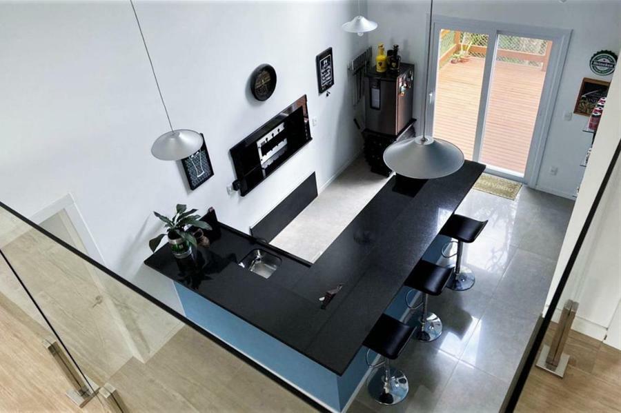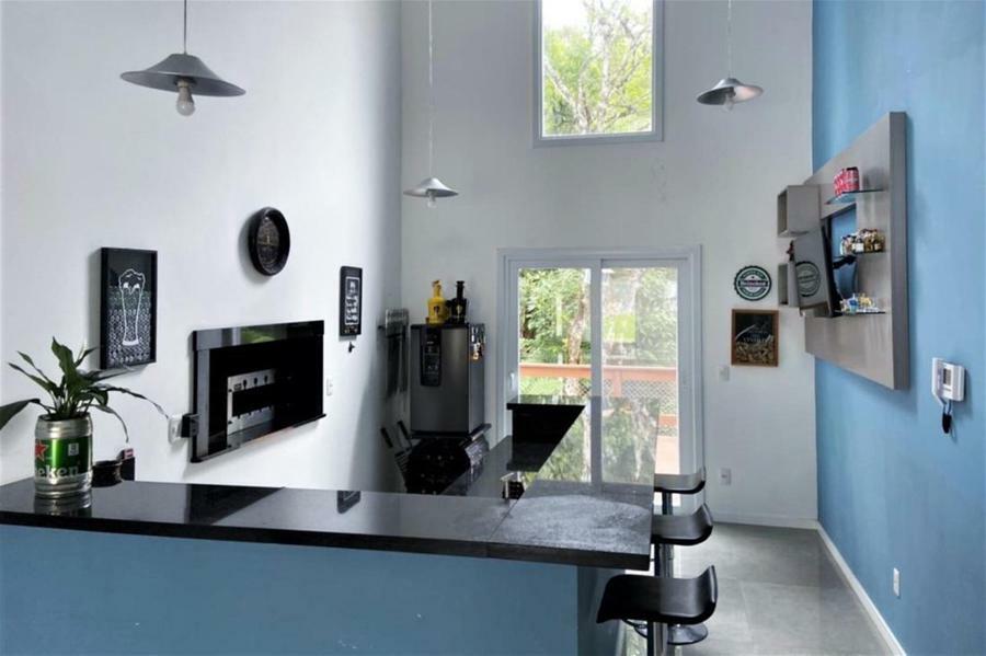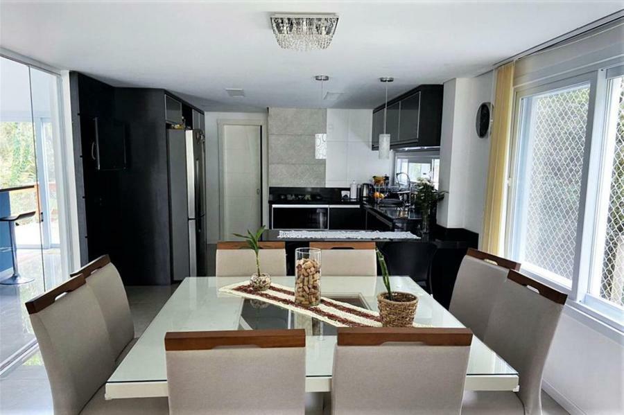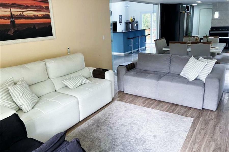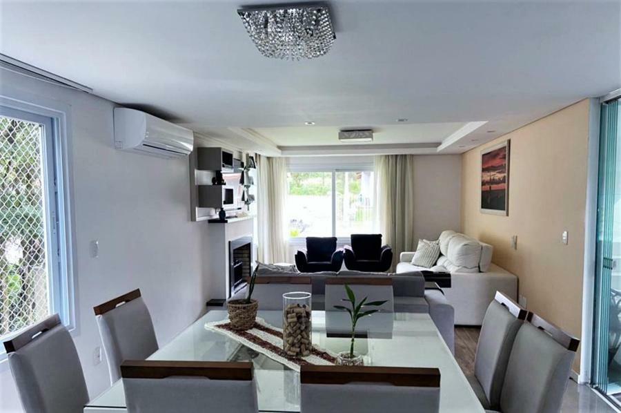 Corretor Gramado e Canela vende: Mobiliada, com terraço. Casa com 4 dormitórios (3 suítes), living com lareira, estar íntimo/mezanino, espaço gourmet com churrasqueira e varanda, cozinha americana, área de serviço, pátio e garagens.