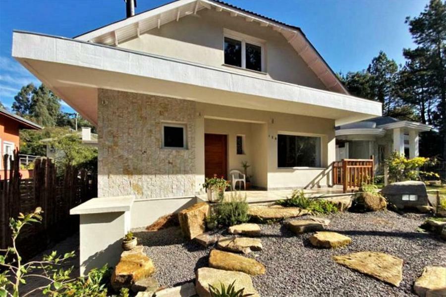 Corretor Gramado e Canela vende: Semi mobiliada, perto do lago negro. Casa de 04 dormitórios (01 suite) com 03 pavimentos. Parte debaixo conta com um ambiente totalmente integrado, cozinha, churrasqueira, sala de jogos, banheiro social e 01 dormitório com split instalado e garagem. 2° Pavimento com cozinha, sala de estar/jantar integradas, 03 dormitórios sendo 01 suite, lavabo, banheiro social espera para split, varanda e churrasqueira. 3° Como deposito, mas podendo fazer outros dormitórios, cozinha, sala de estar ou ate mesmo mezanimo. Localizada em um bairro nobre de Gramado, apenas 05 minutos do Lago Negro, totalmente calmo, com uma vista linda para a natureza, jardim fundos com quiosque, uma linda fonte e pergolados.