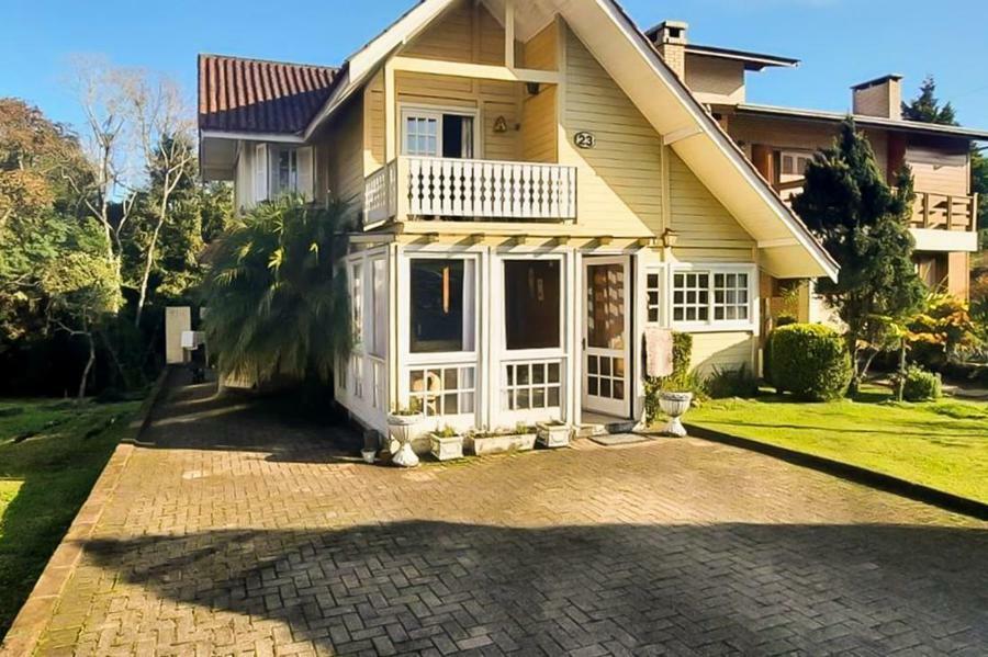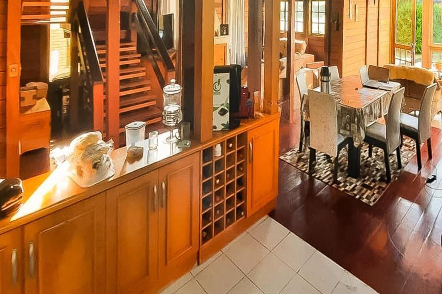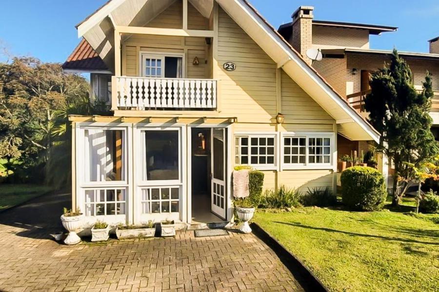 Corretor Gramado e Canela Vende : Casa em condomínio fechado no centro de Canela toda de madeira em estilo colonial com cinco dormitórios, sendo um suite, sala de estar e jantar, cozinha, área de serviço, banho social, lindo terreno privativo.