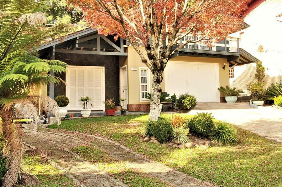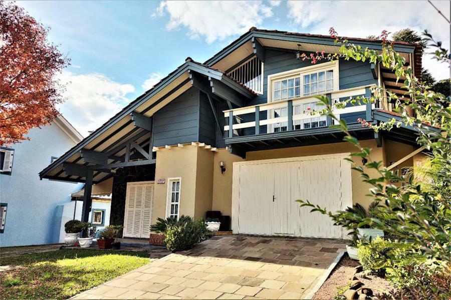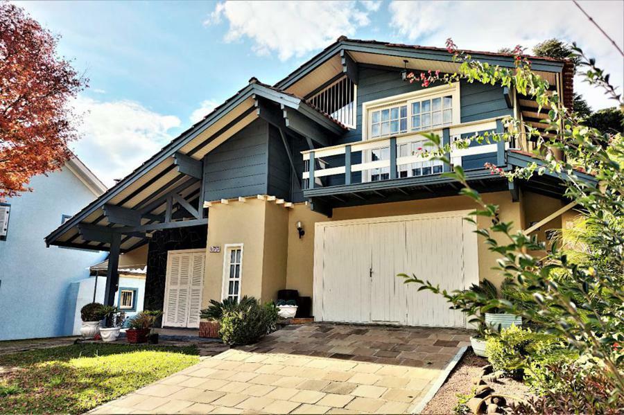 Corretor Gramado e Canela vende: Semi mobiliada perto da Catedral de pedra. Casa em condomínio com 5 dormitórios (2 suítes), living com lareira, home office, espaço gourmet com churrasqueira, cozinha, lavanderia, pátio e garagens.