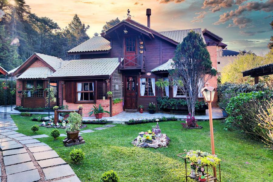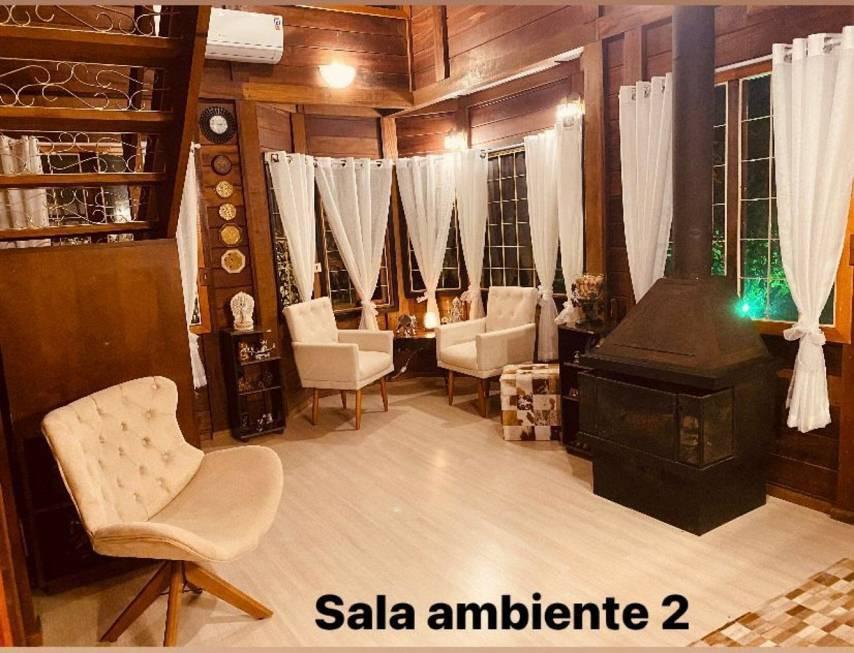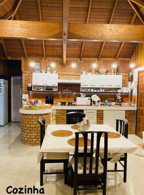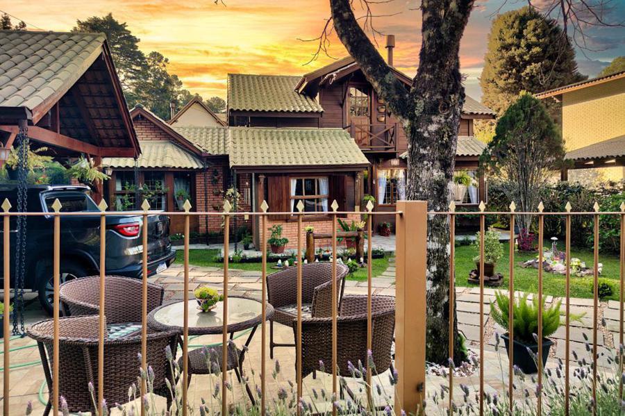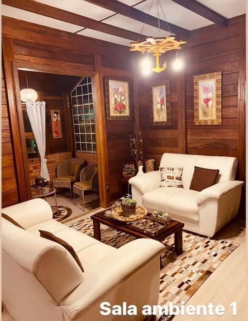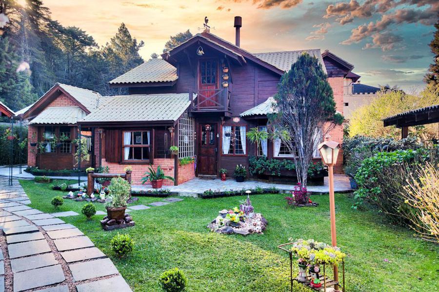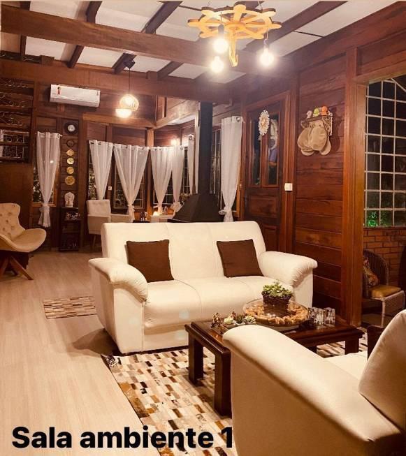 Corretor Gramado e Canela vende: Casa mobiliada, distribuída em 4 dormitórios sendo os 4 suítes, duas delas no térreo e com closet. Sala de estar com lareira, sala de inverno, sala de tv, espaço gourmet com fogão a lenha e fogão campeiro. lavabo, cozinha americana e duas vagas cobertas de garagem.